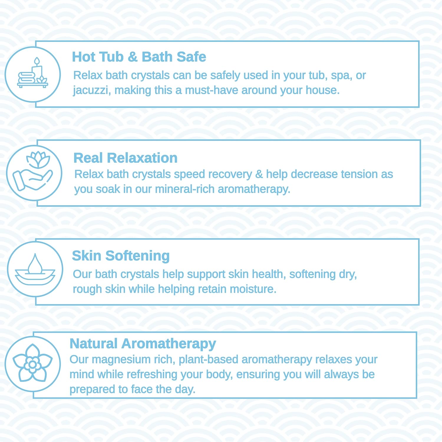 - CRAFTED IN THE USA WITH INTENTION: Proudly made in the USA, Relax Spa & Bath blends quality ingredients with thoughtful design to bring spa-grade luxury right into your post-workout routine.