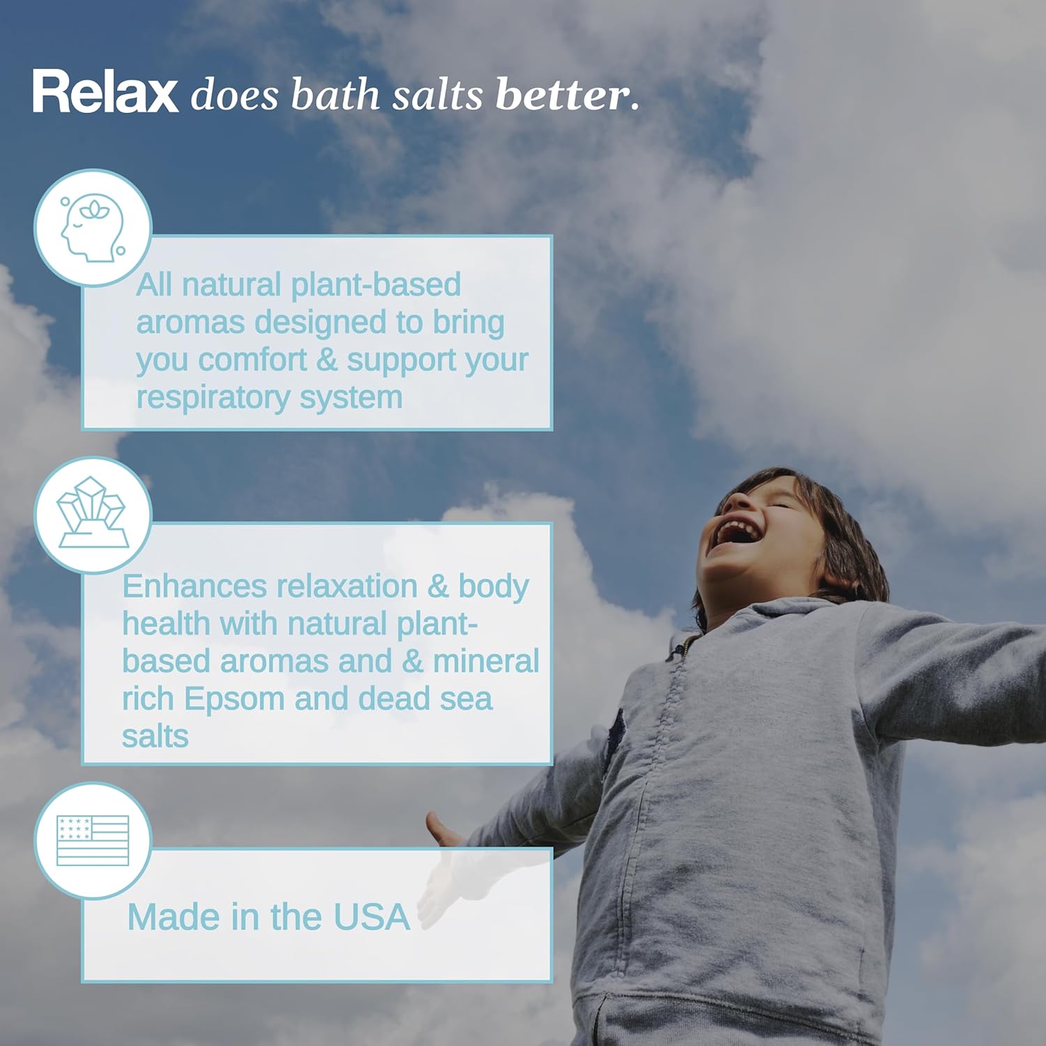 - CRAFTED WITH CARE IN THE USA: Proudly made in the USA, Relax Spa & Bath blends premium ingredients with thoughtful design for a soak that’s easy to use, easy to love.`