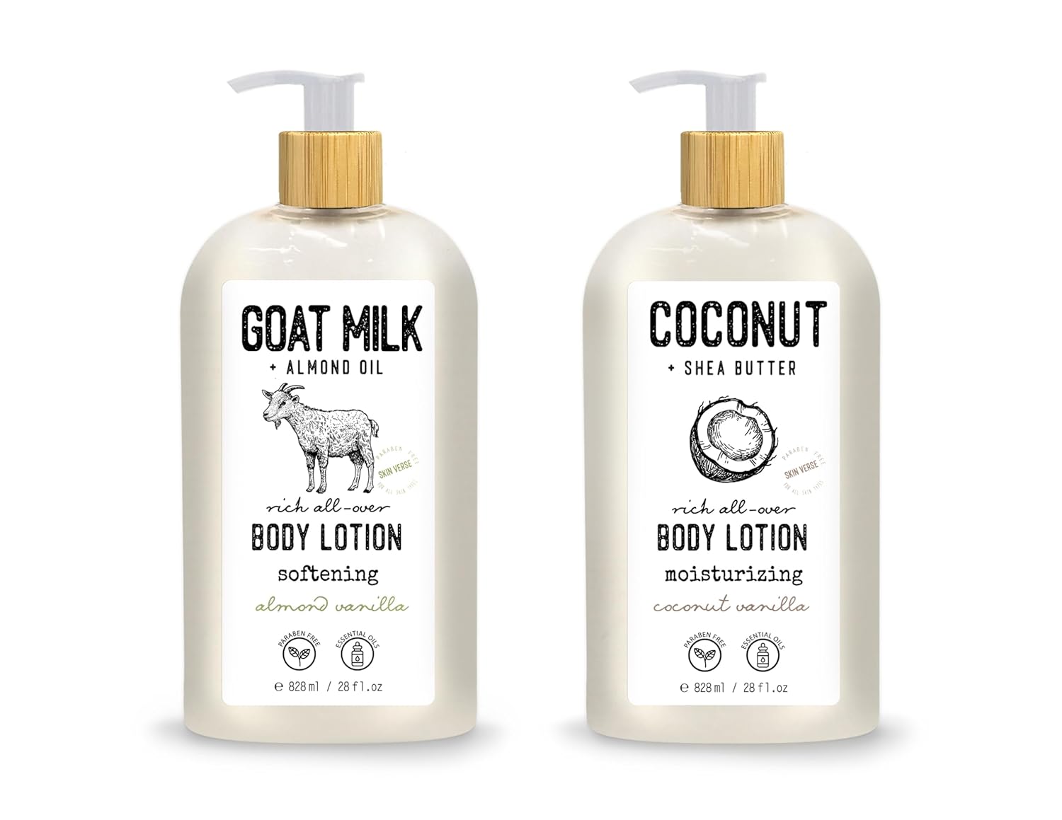 - Deeply Moisturizing: The goat milk lotion softens and smooths skin with its almond vanilla scent, while the coconut lotion delivers intense hydration with a tropical coconut vanilla fragrance.