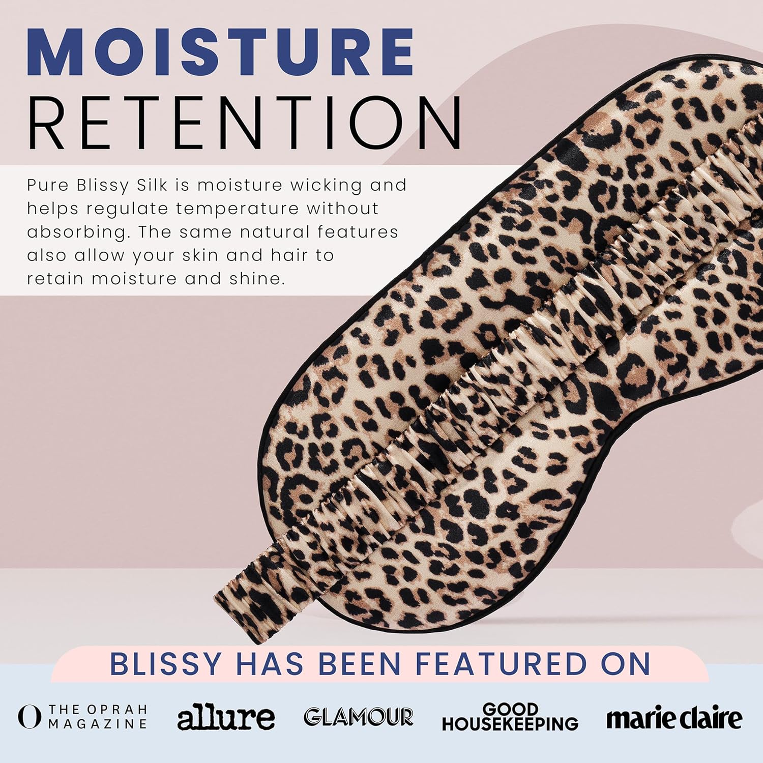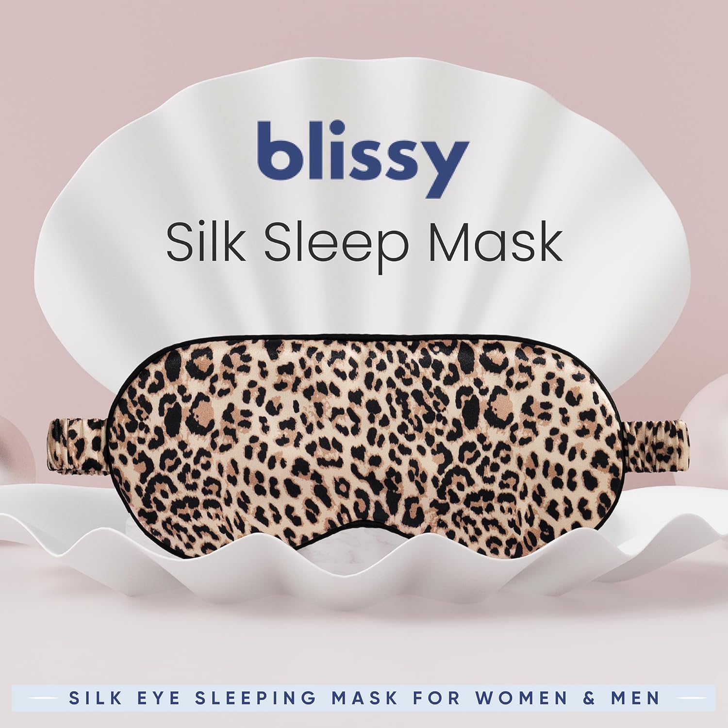Blissy Silk Sleep Mask - Silk Eye Sleeping Mask for Women & Men for Total Blackout - 100% Pure Mulberry Silk, 22 Momme 6a Fibers - Blindfold Silk Sleep Mask Side Sleeper Eye Cover (Leopard)
