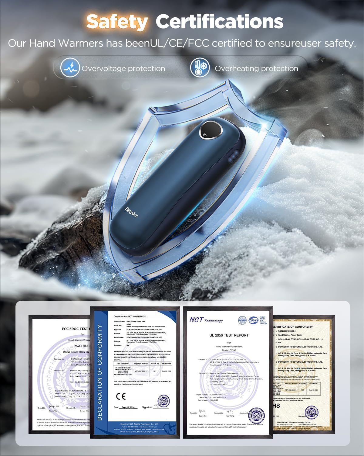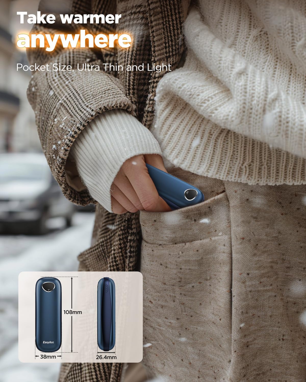 - 【A Heartfelt Gift for Cold Hands and Raynaud's Patients】Warm their hearts and hands with EasyAcc 2 pack rechargeable hand warmer, the perfect gift for those with Raynaud's disease or perpetually cold hands. Lightweight and rechargeable, it's ideal for home, work, or on-the-go. Give the gift of warmth and show your loved ones they’re truly cared for—because everyone deserves a little extra comfort this winter!