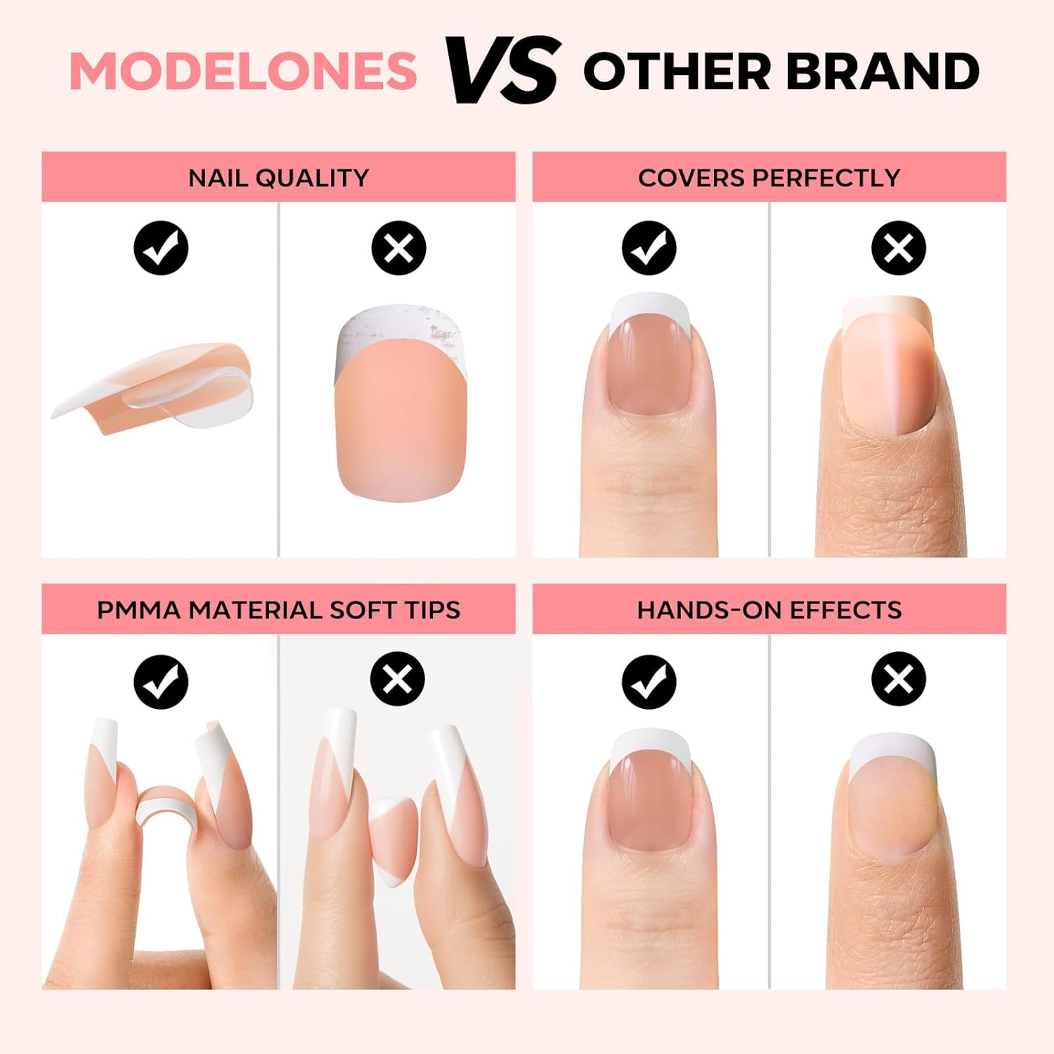 modelones French Tip Press on Nails, 150Pcs Extra Short Square Fake Nails with Nail Box, Deep Nude Gel Nail Tips for Women, Soft Glue-On Nails for Natural Salon Look, DIY Nail Art (15 Sizes)