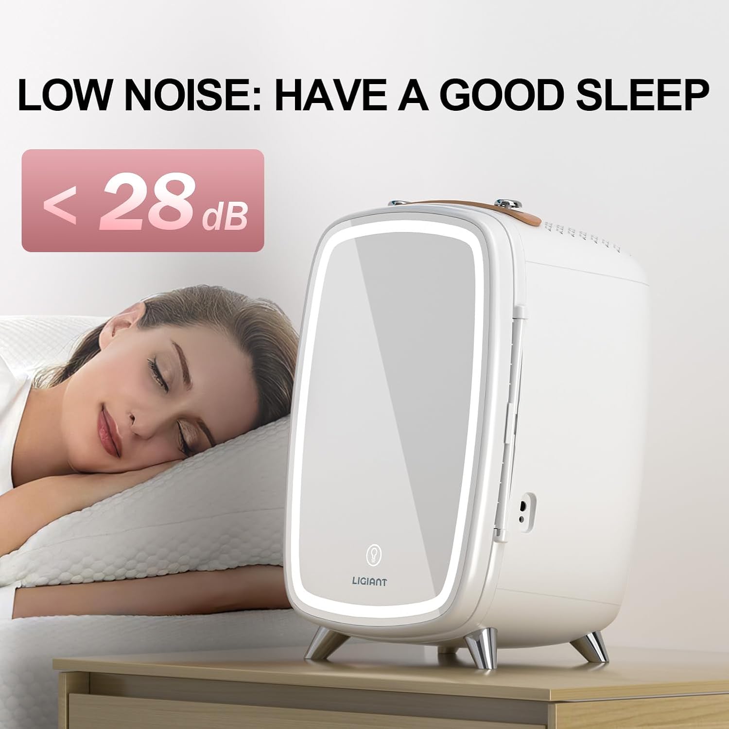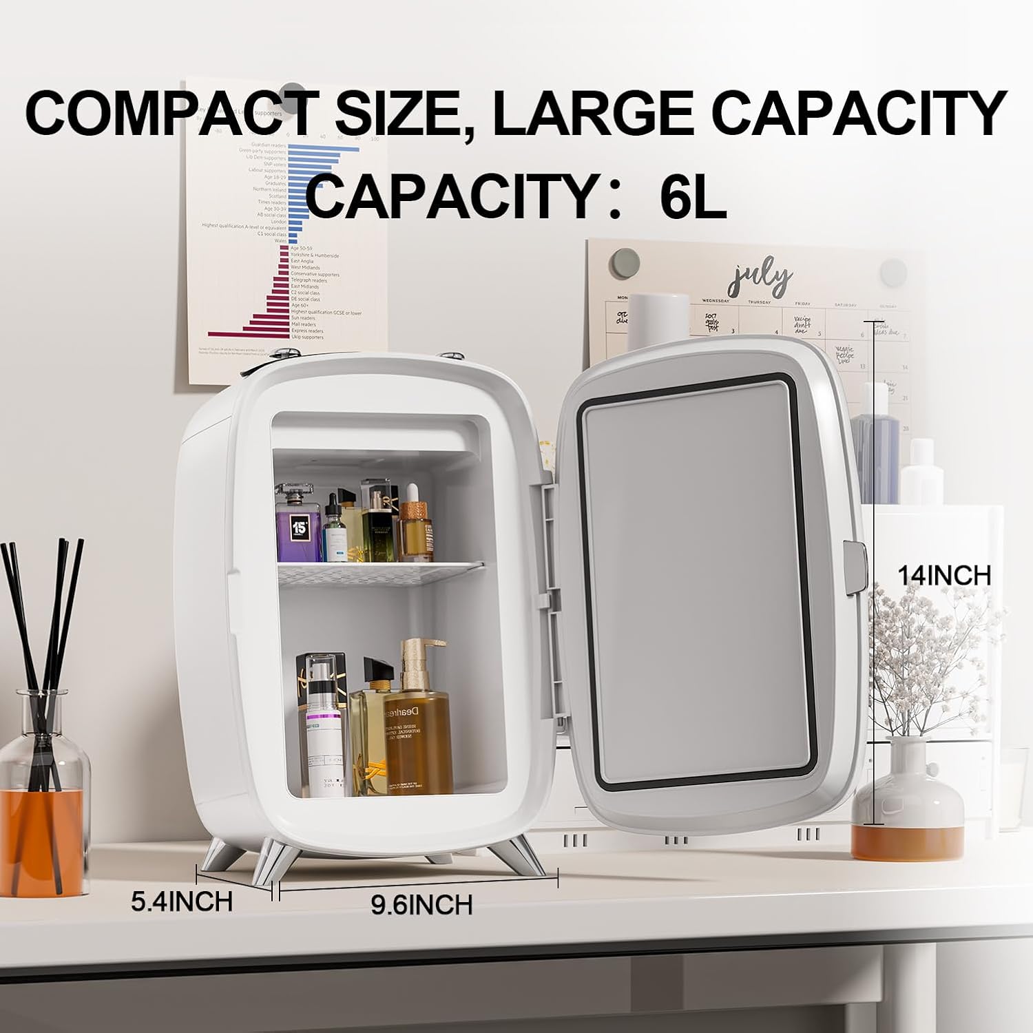 Skincare Fridge, With 3-Level Dimmable LED Light Mirror, Low Noise Beauty Fridge, 6L Large Capacity, Semiconductor Cooling, Portable Design for Multiple Uses - Bedroom, Office, and Travel