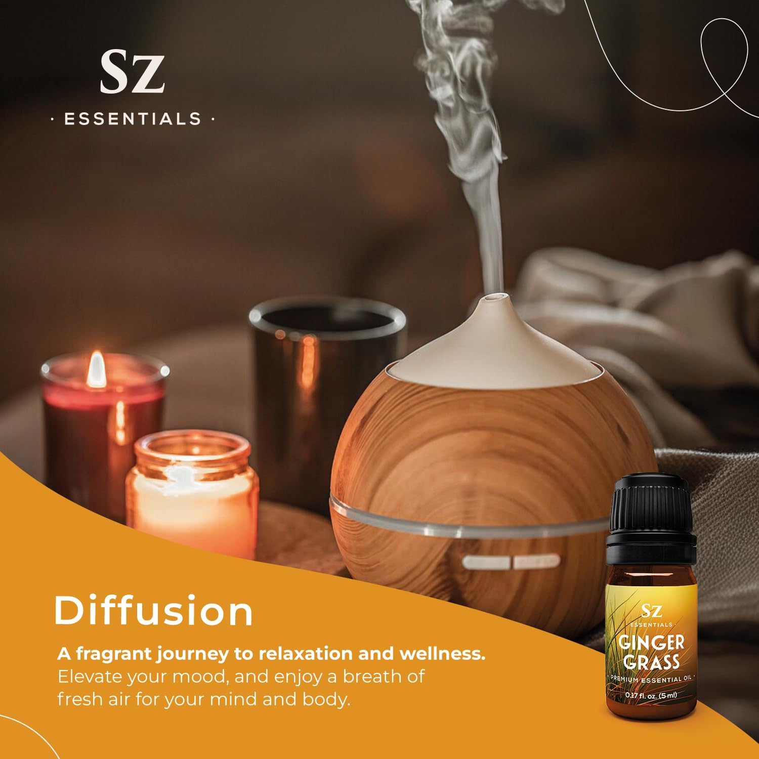 – Ginger Grass Essential Oil – 100% Pure & Undiluted (Cymbopogon martinii VAR. Sofia)– Fresh Citrusy Earthy Aroma – Aromatherapy, Perfumery, Skin Care – Therapeutic Grade - 1/6 oz. 5 mL
