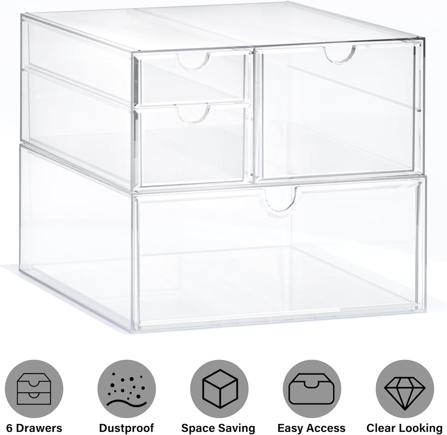 - Multiple Sizes and Expandable: This set includes 2 individual acrylic drawer units, offering a total of 4 drawers, these clear drawer organizers provide customizable combinations to meet your specific storage and organizational needs. The size of each acrylic drawer units is 4.2x6.89x9.92 inches. The office supply organizer can be stacked vertically or expanded horizontally, allowing integration with other sizes and dimensions of storage solutions available in our store.