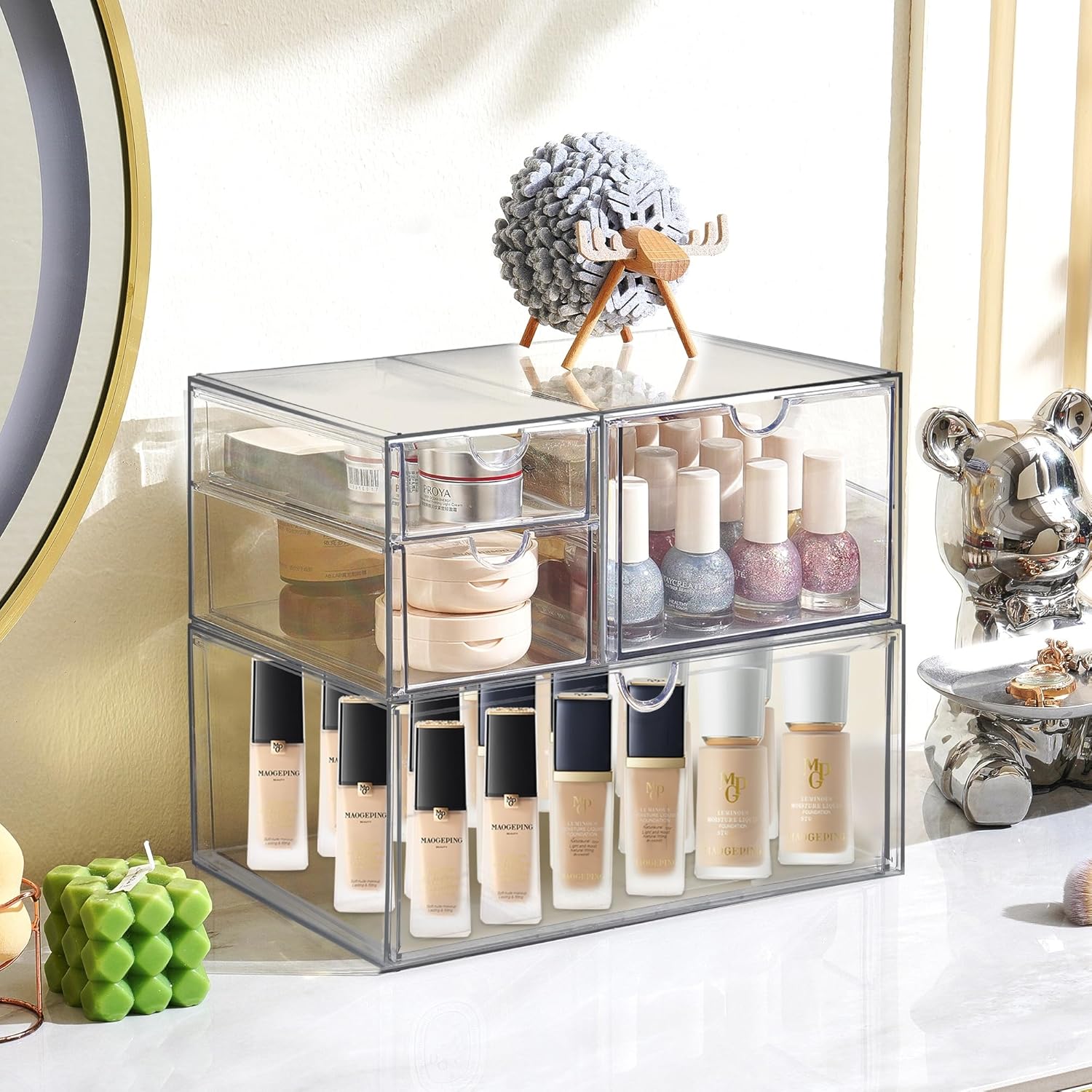 - Unique Design: The acrylic makeup organizer drawer allows for easy identification of contents. Made from durable, unbreakable plastic, they are equipped with silicone anti-slip pads on the bottom to prevent movement when the drawer organizer storage is opened or closed, ensuring a steady and reliable storage solution.