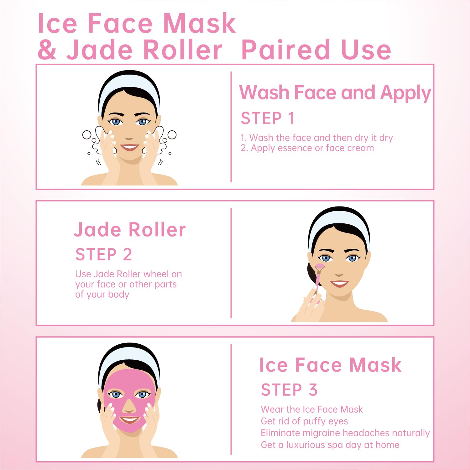 - Cooling Relief: The cold face mask molds perfectly to the contours of your face, delivering an invigorating chill that soothes inflammation, reduces puffiness . Pair it with the ice face roller to enhance lymphatic drainage, diminish fine lines, wrinkles, lifting and firming the jawline and face, and achieve a radiant, glowing complexion. This dynamic duo is perfect for post-workout recovery, relieving migraines, or simply indulging in a luxurious at-home spa treatment.