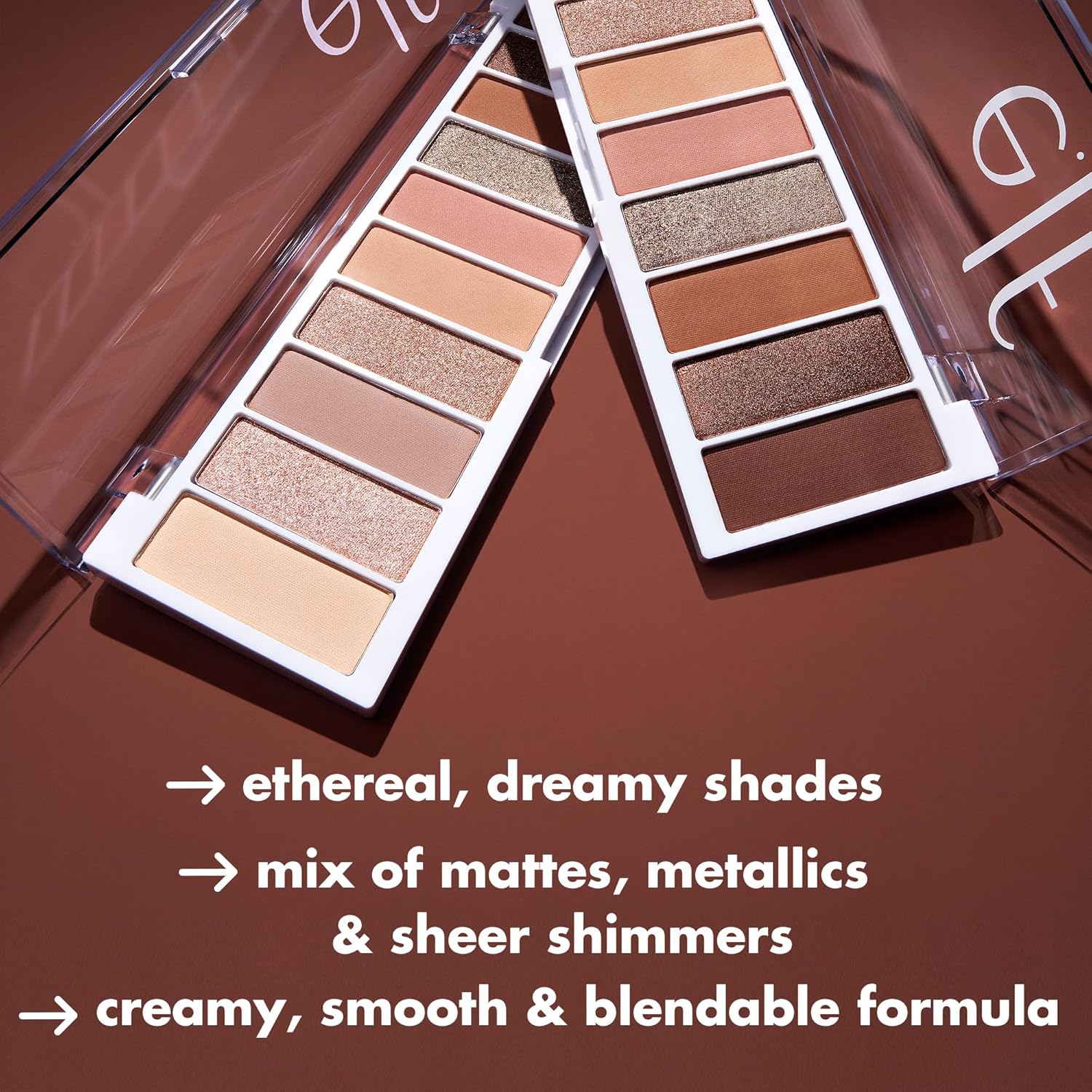 - 10-PIECE EYESHADOW PALETTE: e.l.f.’s Keep It Ethereal eyeshadow palette features lineup of neutrals and rose golds to shade, highlight and define eyes.