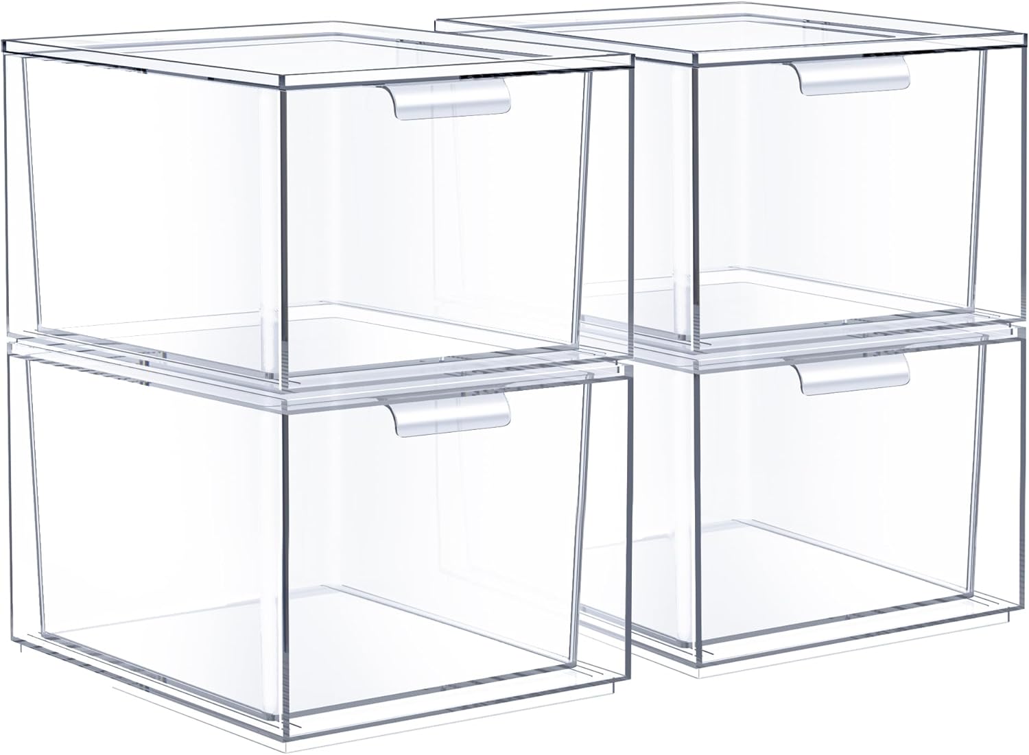 Sorbus Square Clear Stackable Storage Drawers – 4-Pack Plastic Organizer Bins with Handles – Stackable Pull-Out Storage Drawers for Closet, Pantry, Office, Bathroom, Craft, and Toy Organization