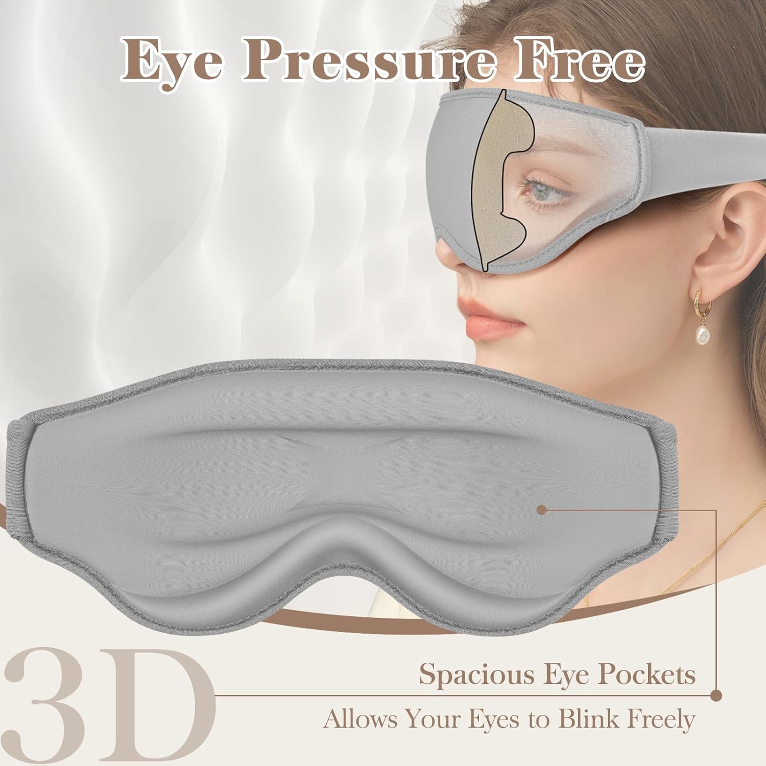 3D Cooling Eye Mask Sleep Mask for Men & Women, 100% Pressure-Free & Light Block-Out Eye Mask for Sleep with Easy Adjustable Strap, Night Eye Cover for Travel, Grey
