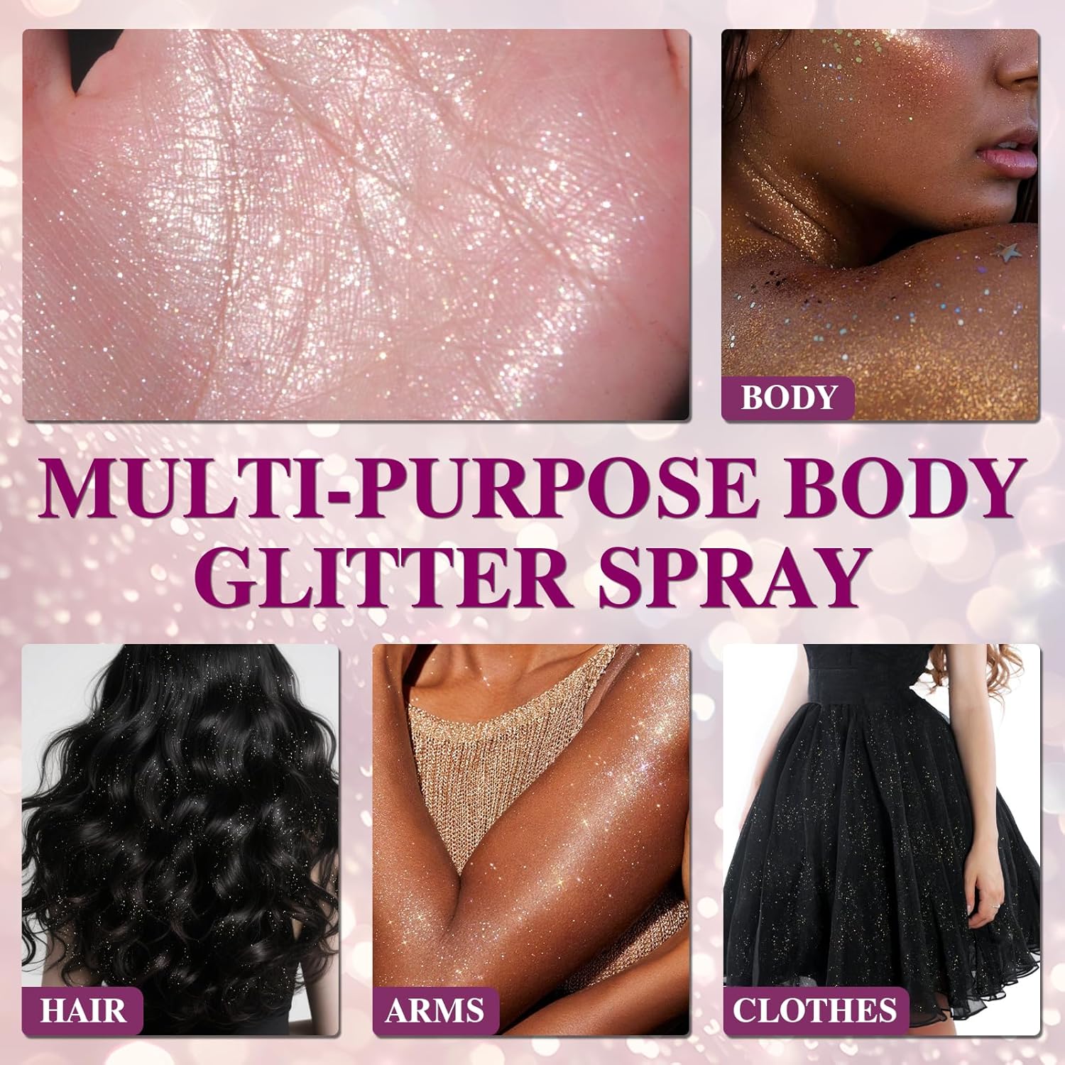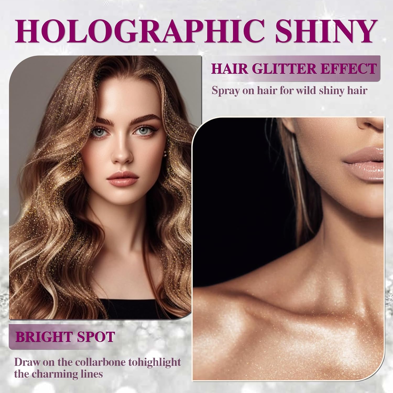- 【Highlight Body Glitter Spray】Body glitter spray is the perfect for your hairstyle and makeup routine. Perfectly prepared for festivals, clubs, parties, raves, costumes, and themed events.