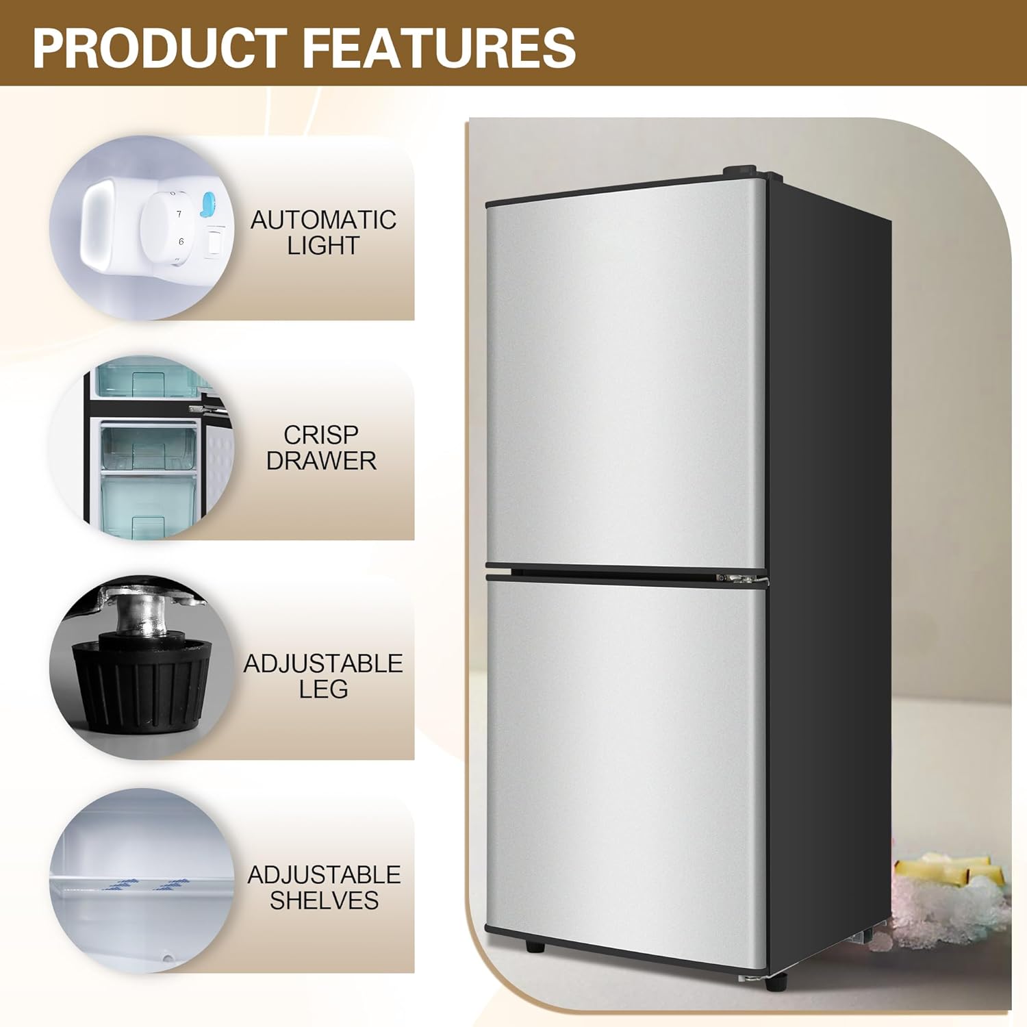 - 🧊【2-Door Fridge and Freezer】Enjoy the convenience of a 2-door small refrigerator with freezer, offering a spacious 3.0 Cu. Ft. refrigeration compartment and a separate 1.2 Cu. Ft. freezer compartment. This allows you to easily store and organize a variety of food and drinks, ensuring that everything has its designated space. From fresh produce to frozen treats, our mini fridge provides the perfect solution for all your storage needs with the 7-level thermostat control.