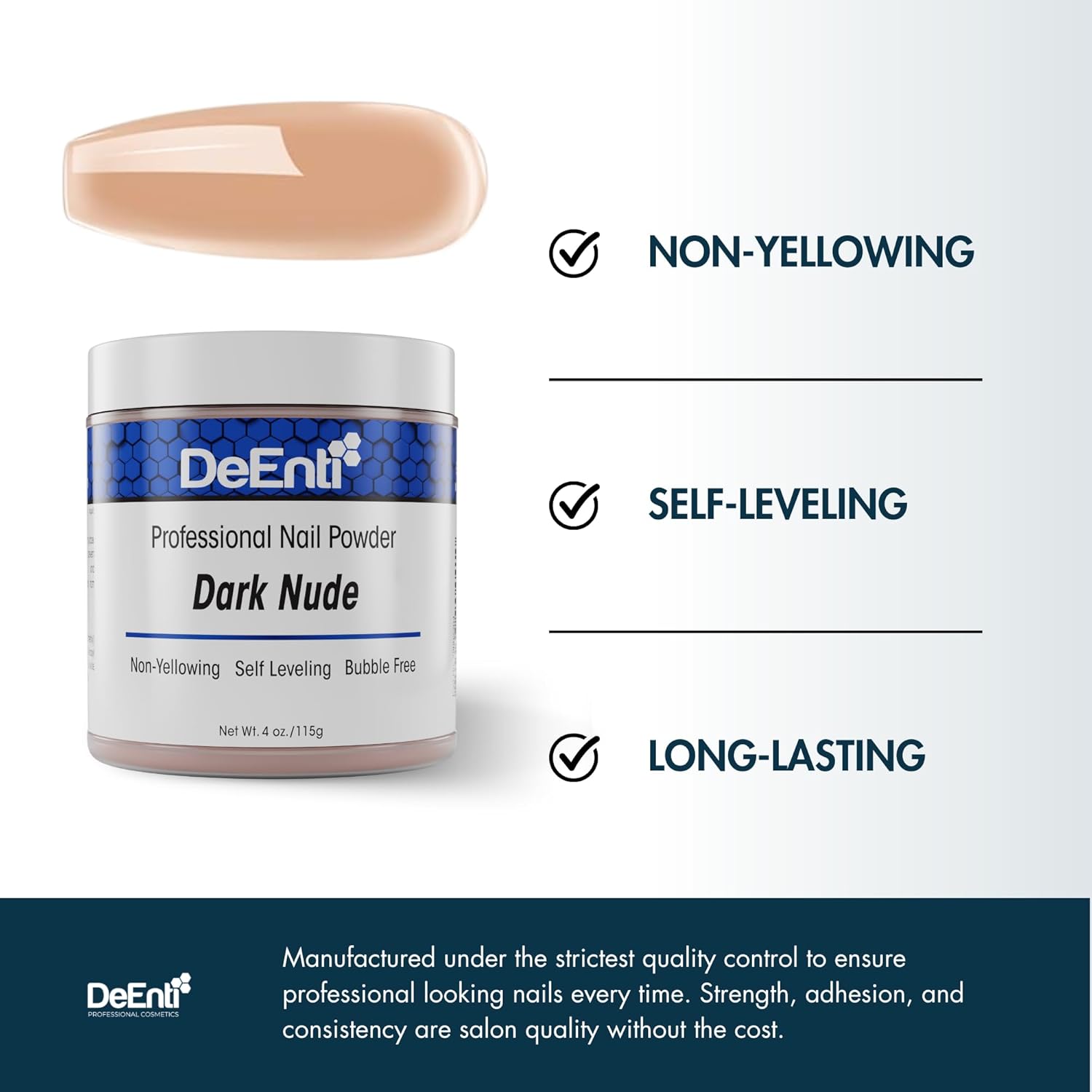 - PROFESSIONAL QUALITY NAIL POWDER polymer Dark Nude in color with a standard set speed. Perfect for at home manicures, nail painting and gel polish, our gel powder dip is long-lasting, chip resistant and a perfect addition to your acrylic nail dip kit.