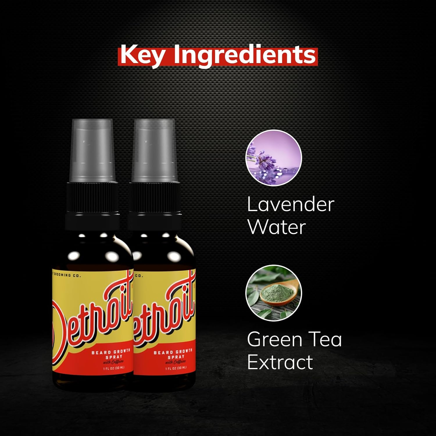 Detroit Grooming Co. Beard Growth Spray | Boost Beard Growth with Biotin, B7 & Caffeine | Hydrating Beard Care with Lavender Water, Green Tea & Glycerin | 1oz Bottles (2-pack)
