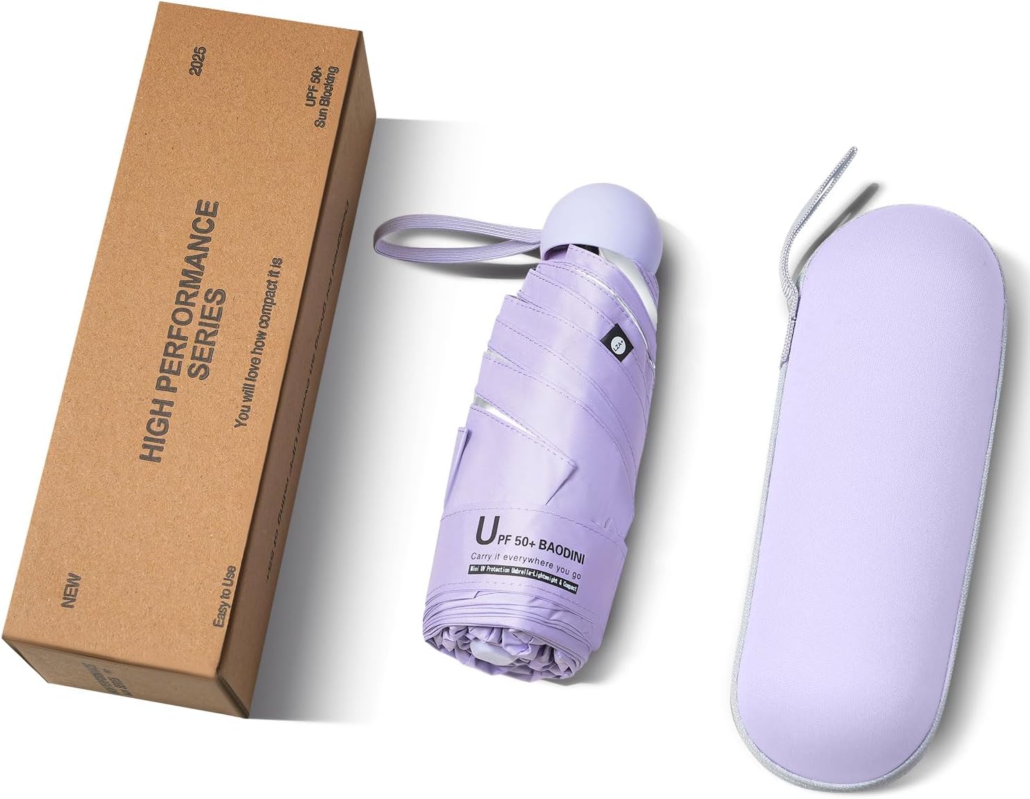 BAODINI Travel Essentials Mini Umbrella for Purse With Case Small Compact UV Sun Protection Lightweight Tiny Pocket Manual Open Close Umbrella for Women Kids and Men Fit Purse Backpack