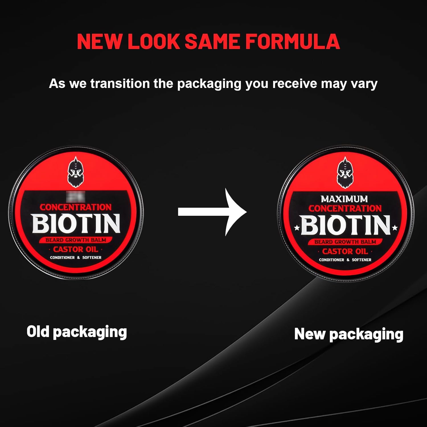 - 【MAXIMUM CONCENTRATION BIOTIN BEARD BALM】 Our beard balm is specifically formulated to promote beard growth and soften your beard. Biotin, one of the key ingredients, helps strengthen hair follicles, promoting healthy beard growth. As a topical application, biotin nourishes your hair follicles and prevents shedding while revitalizing and improving the appearance of your weak and damaged hair