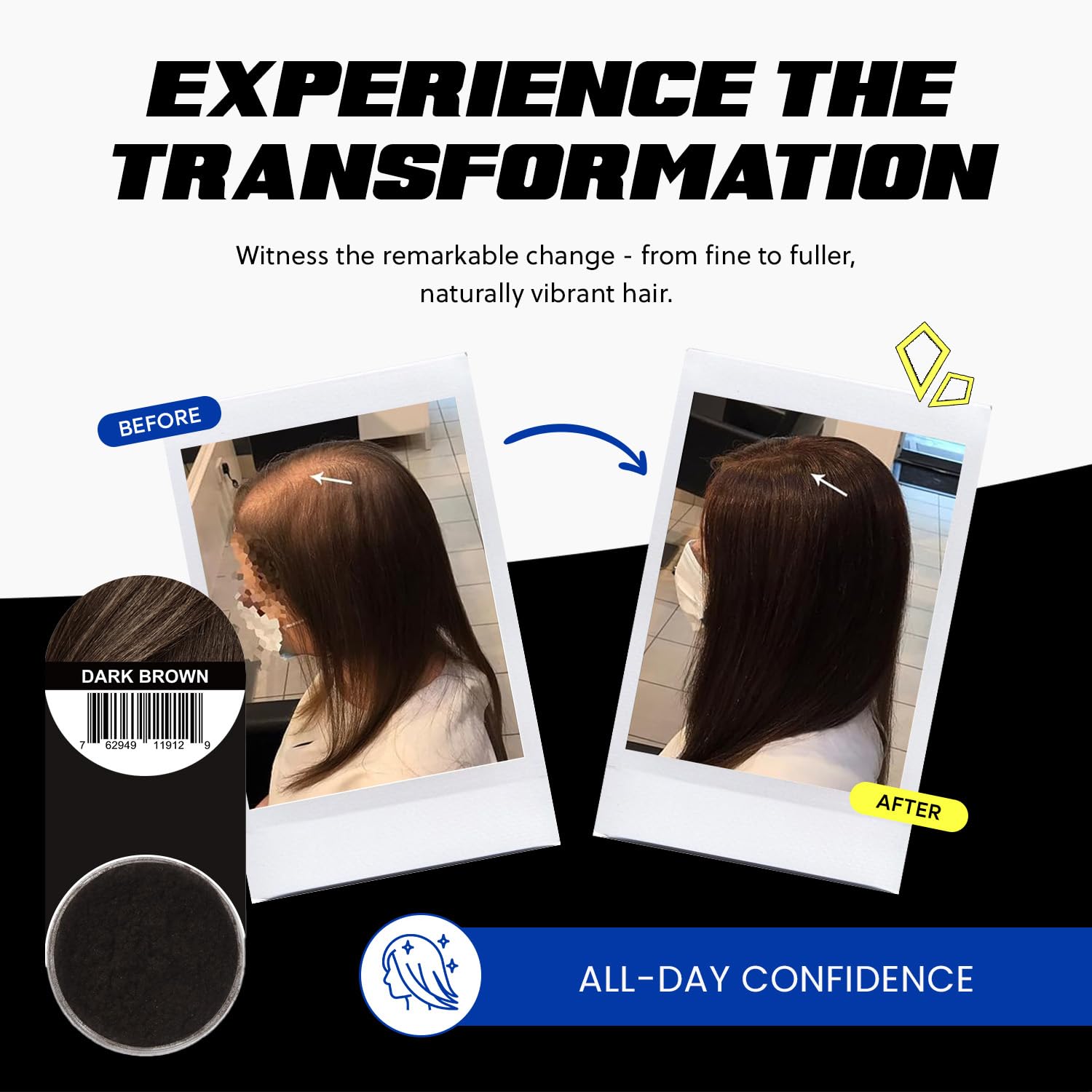 - All-Day Hold: Enjoy a worry-free day with hair fibers for thinning hair that stay put even in the most unpredictable weather; No need for constant touch-ups, our hair fibers provide lasting confidence whether at work, out with friends, or during an intense workout