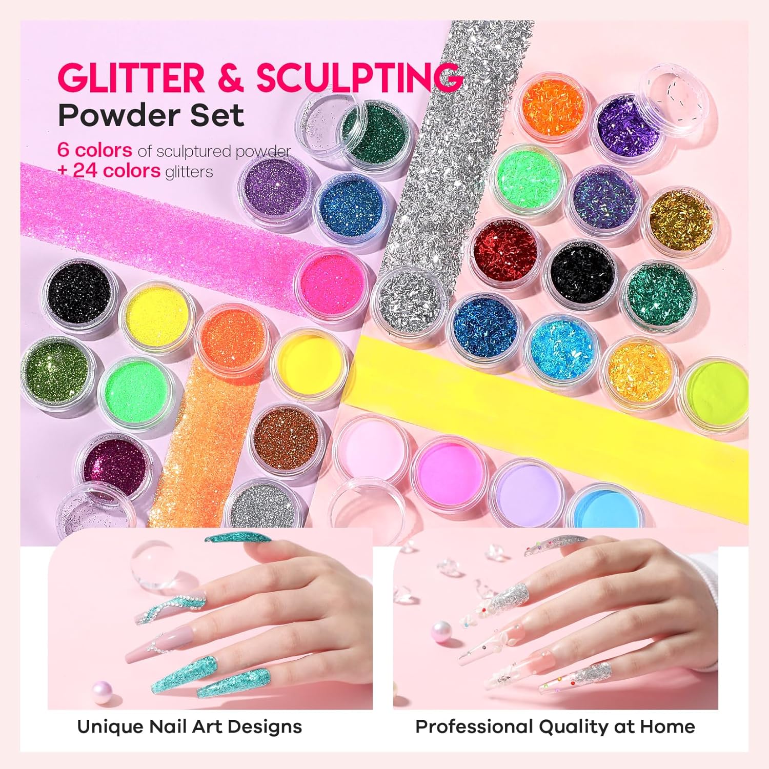 - Endless Creative Possibilities with 1000+ Design Options: Unleash your inner artist with our massive collection of glitters, powders, gels and decorations! Create trendy ombre nails, elegant french tips, festive holiday designs or edgy geometric patterns. The included step-by-step guide makes nail art easy for beginners, while offering advanced techniques for pros.