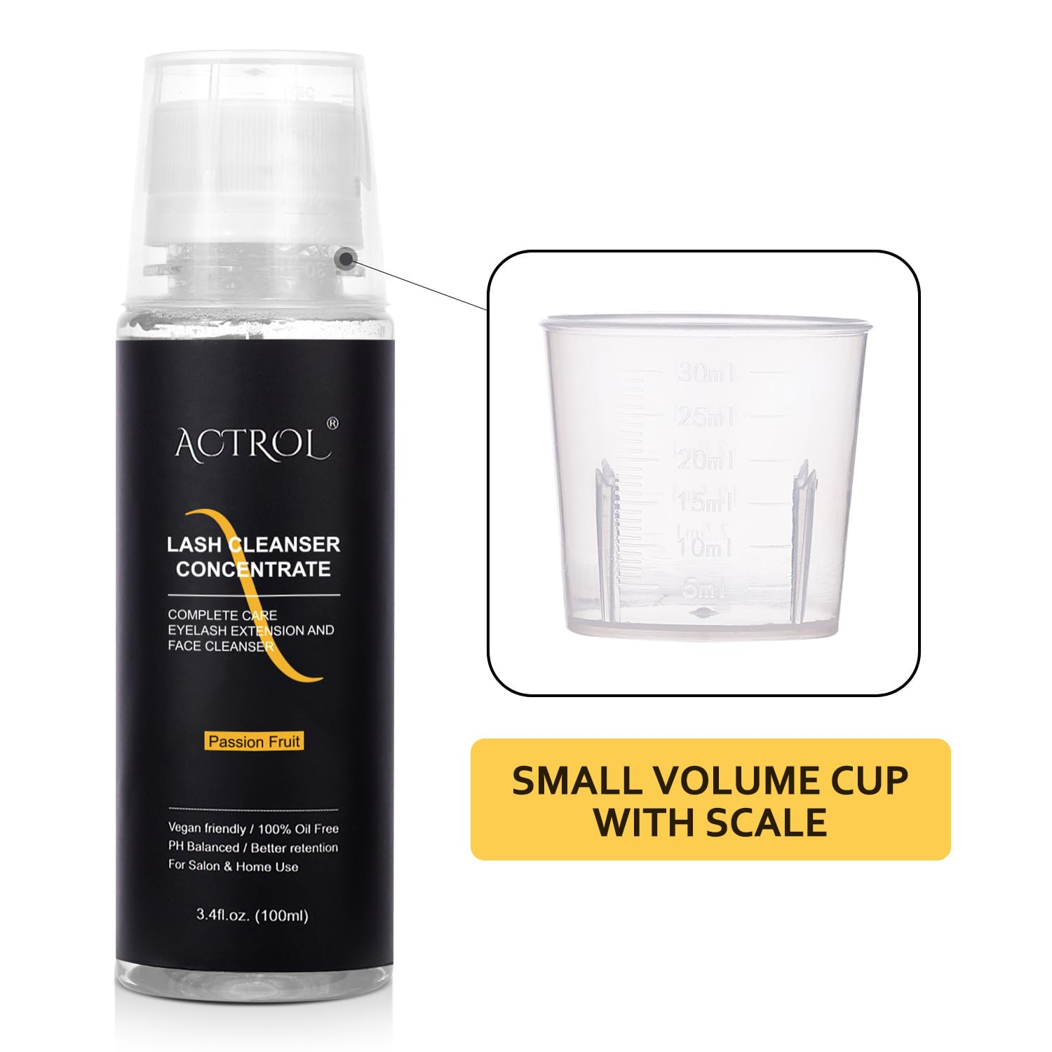 Eyelash Cleanser Concentrate 100ml Passion Fruit Professional Lash Shampoo Foaming Cleanser Lash Wash Concentrate for Extensions Lashes with Salon Home Care-Makes 40 Bottles Passion Fruit