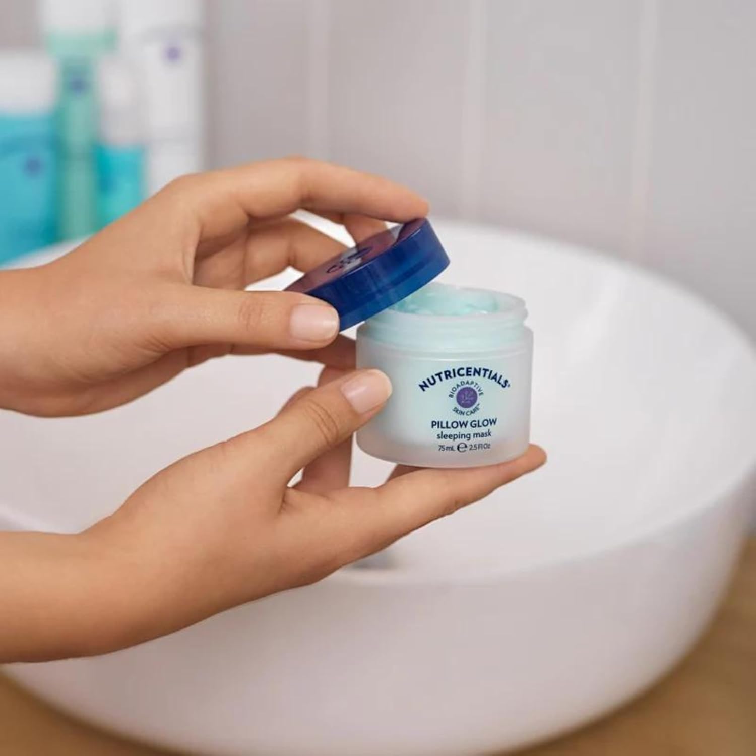 NuSkin NUTRICENTIALS Pillow Glow Sleeping Mask | Overnight Hydration | Bioadaptive Botanical Complex | Red Algae | Apple Extract | Deep Sea Water | Skin Glowing & Pore Minimizing | 2.5 Fl Oz | 2 Pack