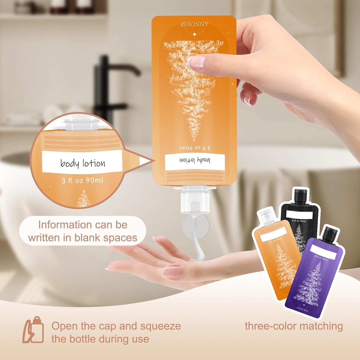 9 Pack Travel Pouches for Toiletries, Refillable squeeze Liquid travel pouches,Travel Shampoo and Conditioner Pouches,3oz leak proof travel pouches (Tree)