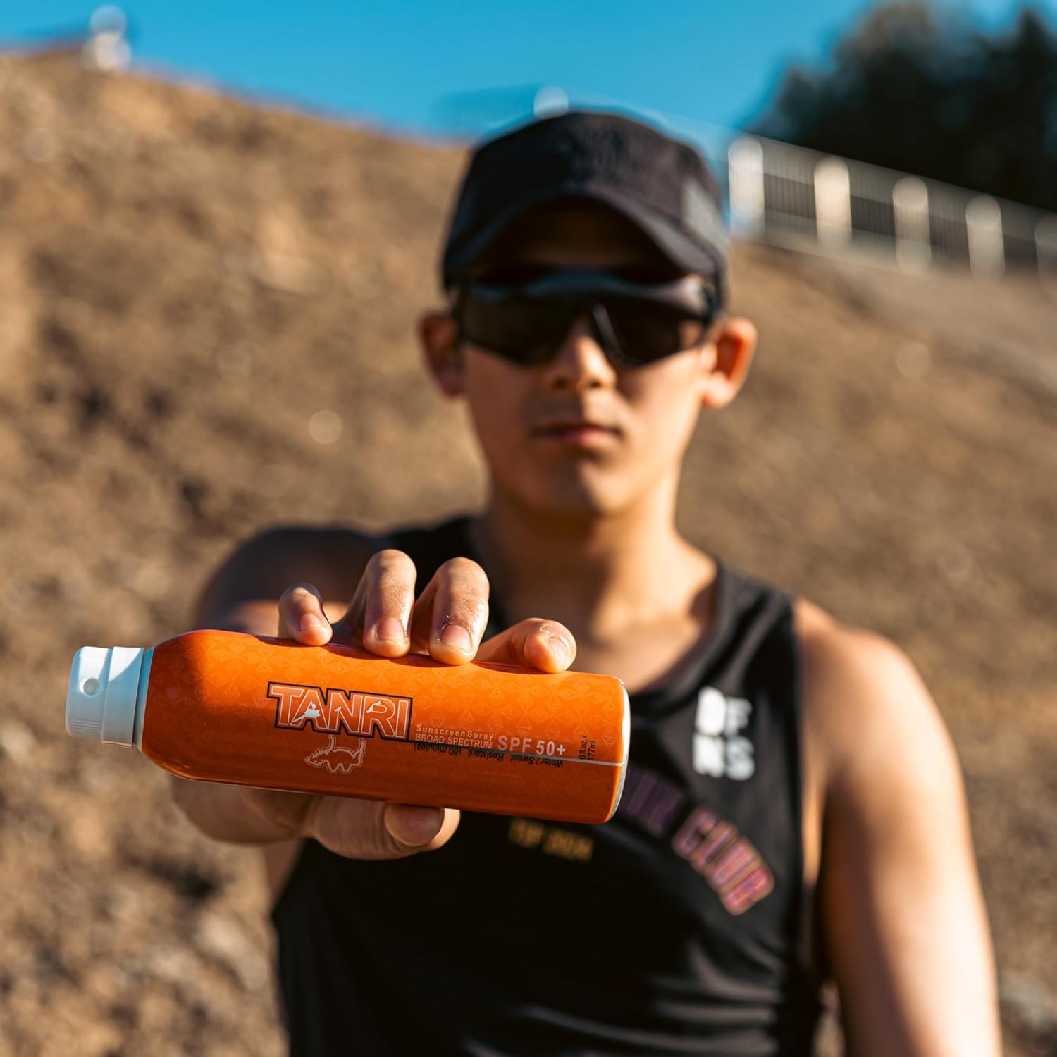 TANRI Primo Explorer Pack; Includes SPF50+ Sunscreen Spray that Goes on Clear, Active Wipes No-Rinse Body Wipes, Moisturizing SPF15 Pear Lip Balm and an Adjustable Fanny Pack (4-Pack Bundle)