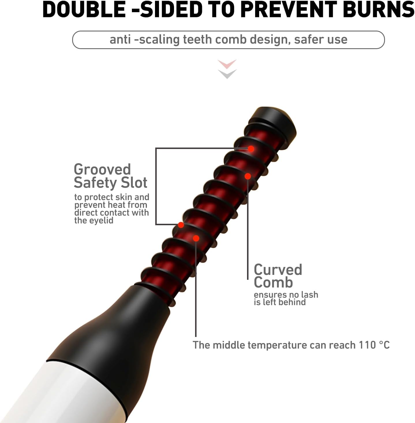 - 【SUPER EASY TO USE&BEGINNER-FRIENDLY】The heated eyelash curler thermal protection slot extends the distance between Ceramic heating element and the eyelid,ensures safe,gentle use.avoiding damage to the skin or high-temperature contact with the eyelid,helping you to create long-lasting and delicate eyelash makeup safely and quickly.making it easy for both beginners and experts to achieve flawless,long-lasting lash curl