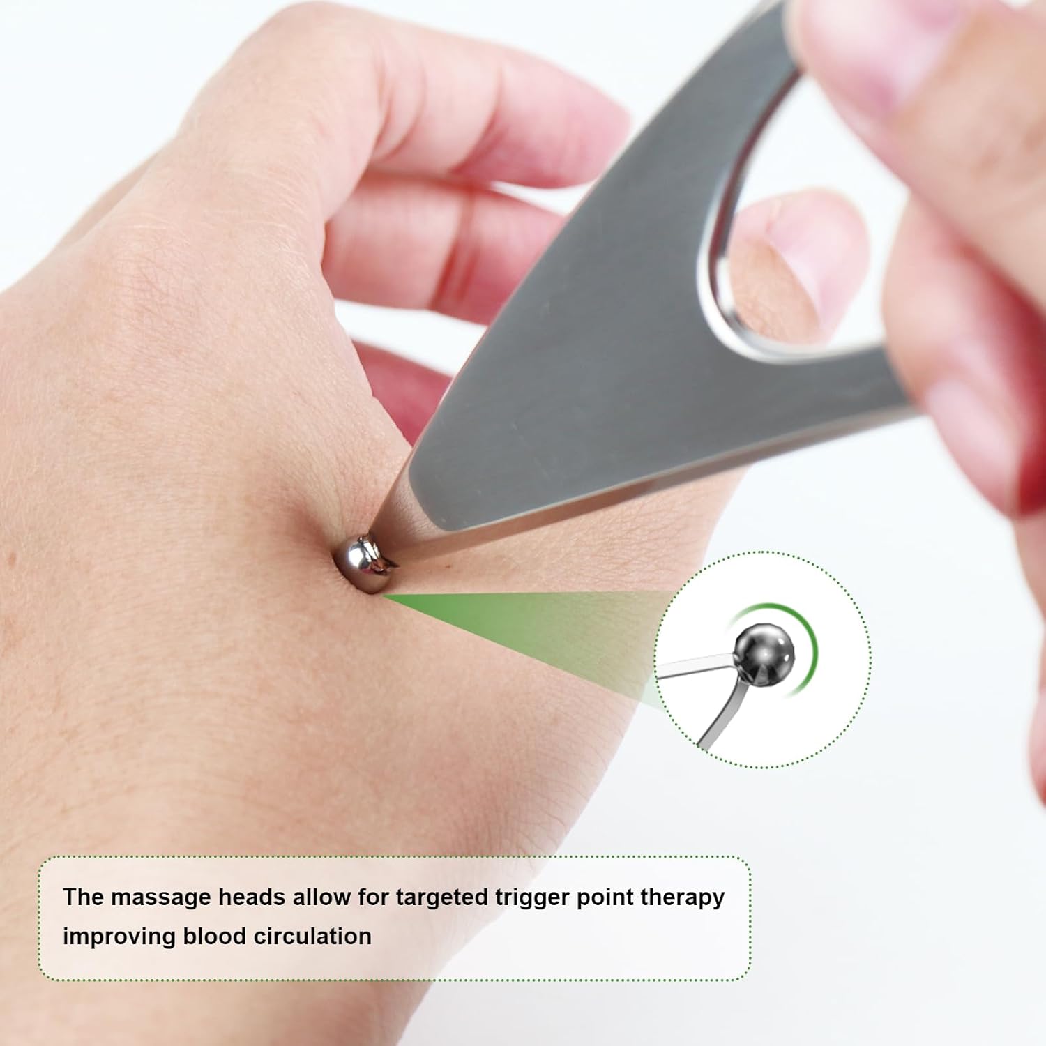 - 4. Efficient Massage Heads: Our stainless steel tool features massage heads that efficiently target body parts, allowing for targeted trigger point therapy, improved blood circulation, and tension relief.