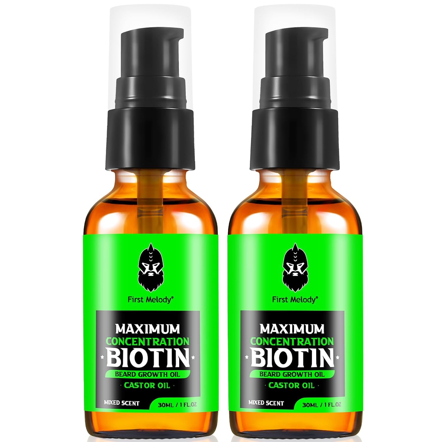 Beard Oil,Maximun Thickening Biotin, with Castor Oil and Argan & Jojoba Oils, Promotes Beard Growth, Styles, Strengthens & Softens Beards & Mustaches,1 Ounce*2(2 Pack)