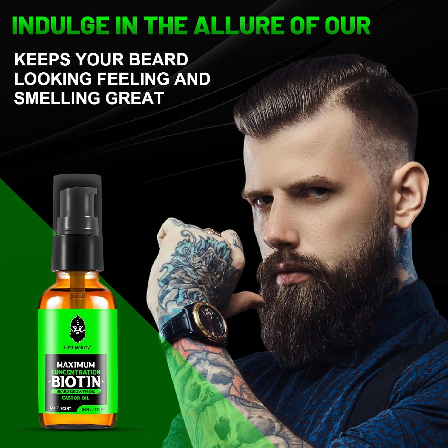 - 【BEARD SOFENTING AND GROWTH】Our beard conditioner and oil, crafted with top, is the best detangler beard oil for men. It makes your beard thicker, fuller, and softer. Maximun Concentration Beard BIOTIN Oil is the best leave-in beard conditioner for men,Beard oil offers softening, conditioning, moisturizing, and styling effects, embodying the epitome of a perfect beard