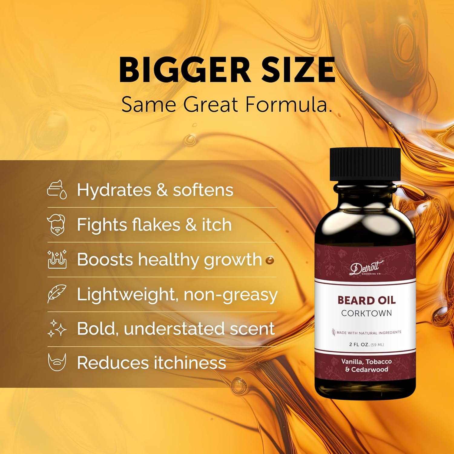 Detroit Grooming Beard Oil | Hydrating & Nourishing Formula with Vitamin E • Corktown Scent (2 oz)