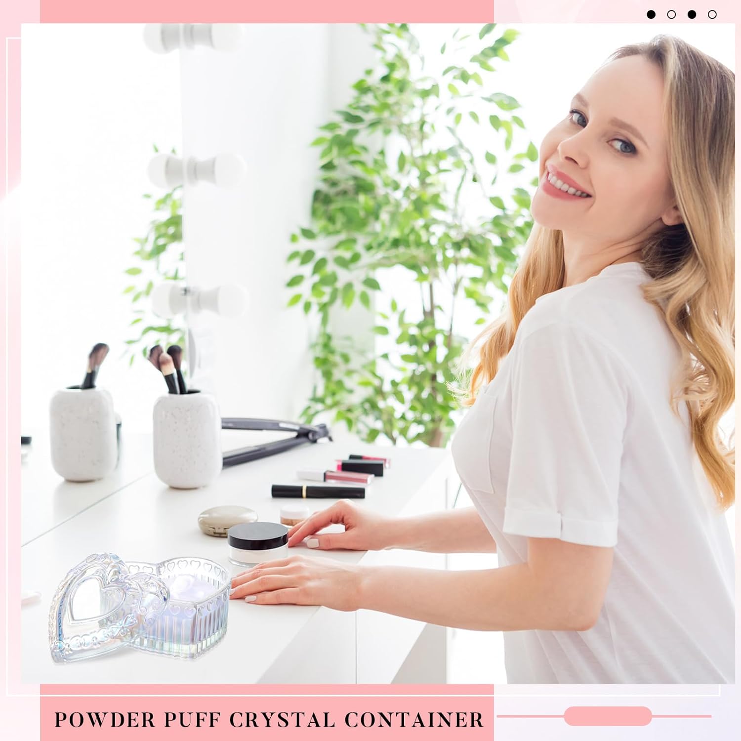 - Exquisite Design and Material: the set includes two powder puffs and a Dazzling glass puff container; Our glass powder puff jars look beautiful, crystal glass material, powder puff is made of soft and skin-friendly plush; This vintage and classy style is designed to offer an irresistibly soft feeling on your skin while presenting an elegant look; Tips: this product is not a sealed can