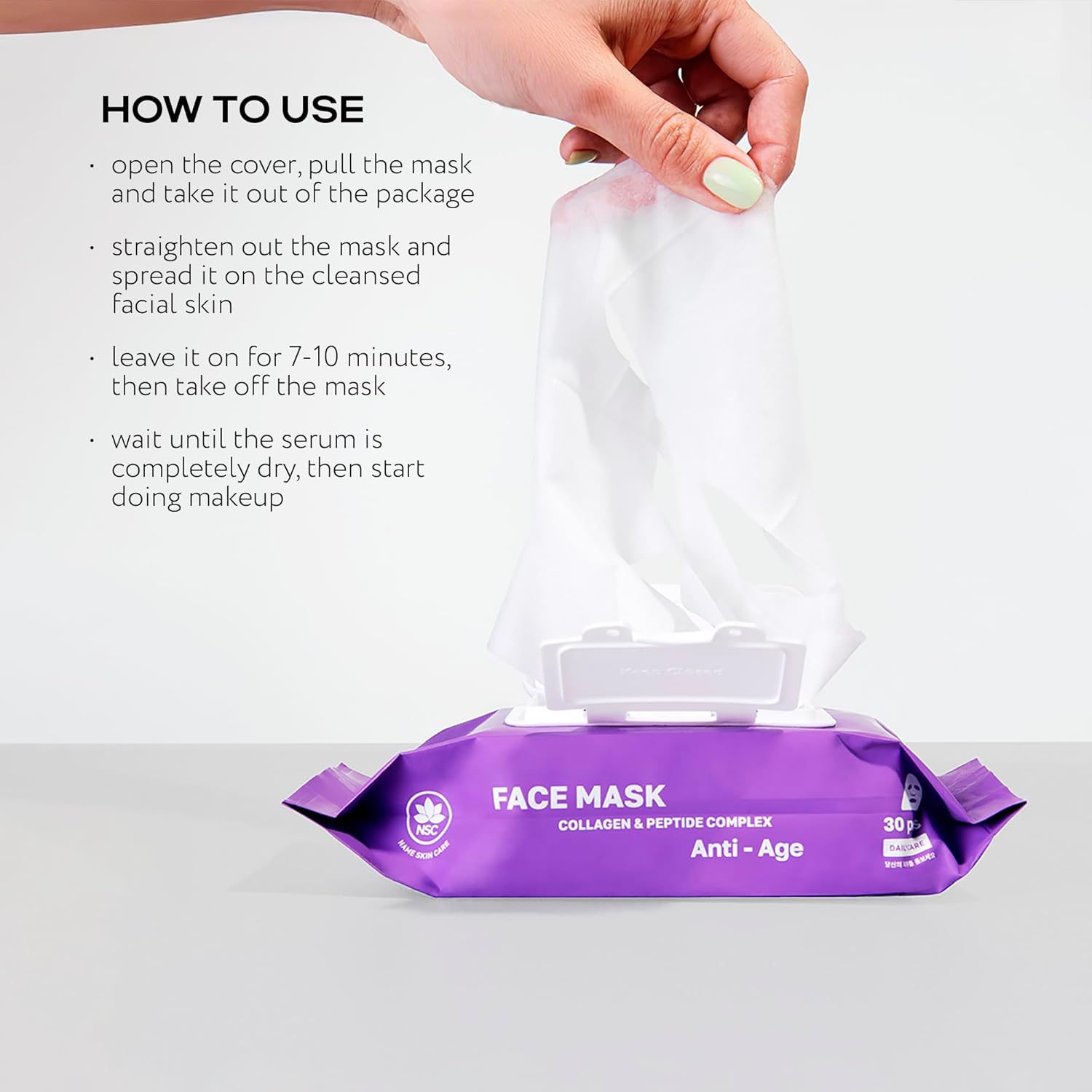 Korean Collagen Face Mask Set - 30-Pack Premium Sheet Masks with Peptide Complex - Advanced K-Beauty Skincare System - Complete Monthly Supply for Daily Care - Intensive Hydrating Facial Facemasks