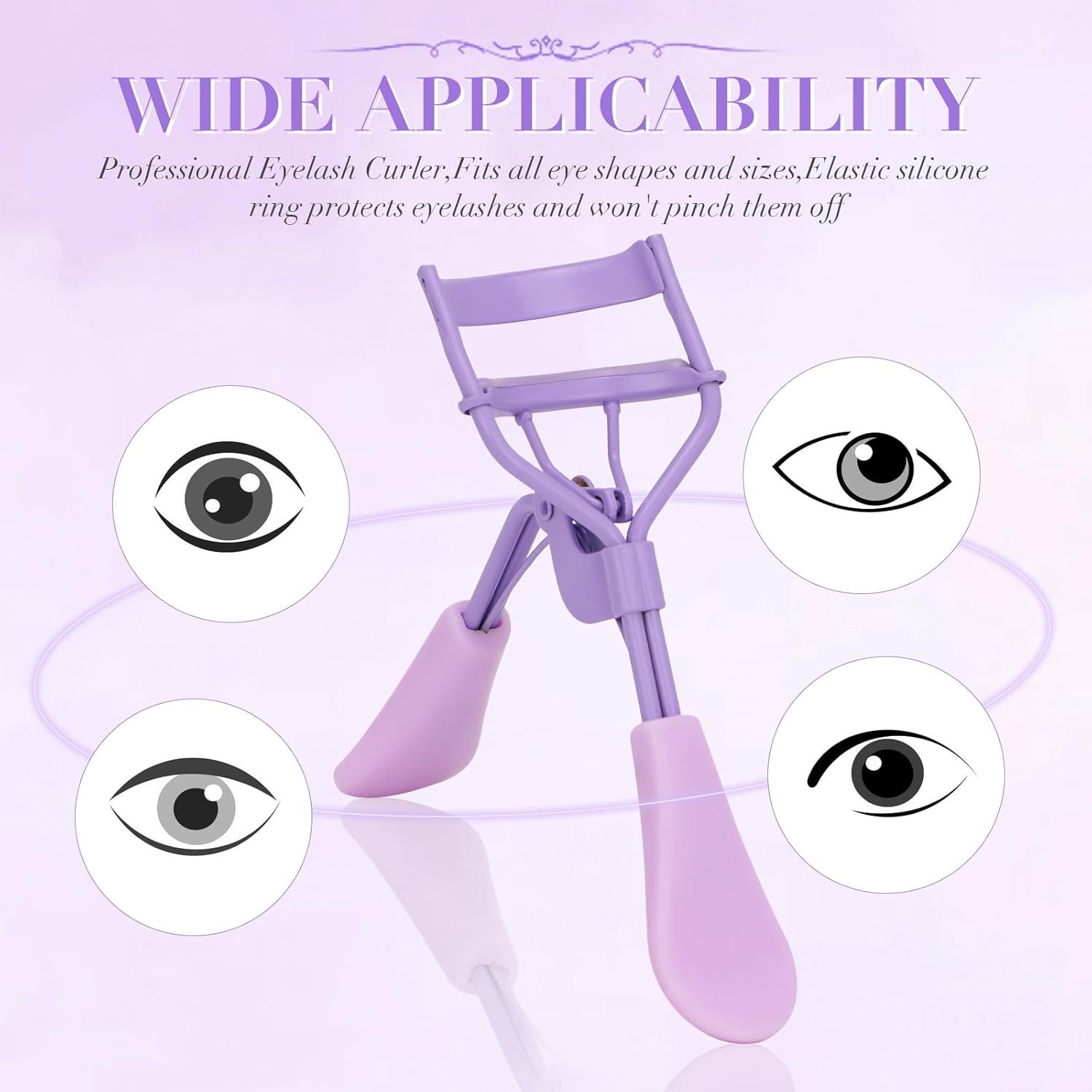 Eyelash Curler with Pads, Lash Curler 2 Pcs with 10 Extra Silicone Replacement Pads, Comfortable Grip for Effortless Curling – Eyelashes for The Perfect Eye Contour (Hyacinth Purple)