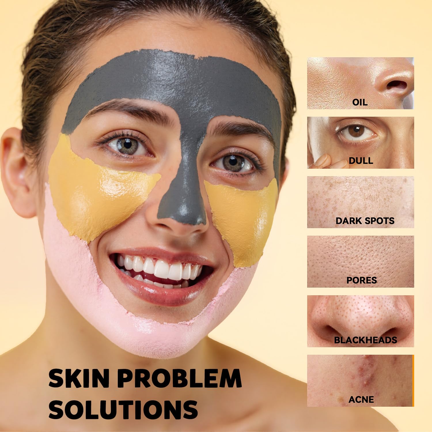 Clay Facial Mask Set 9 Pack - Turmeric Clay Mask - Rose - Dead Sea Minerals Mud Mask, Skincare Gift Set - Brightening, Moisturize & Deep cleansing for Dry, Sensitive Skin, Travel-Friendly & Portable