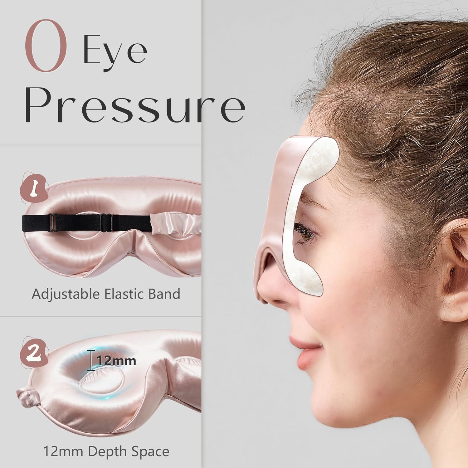 - ✅3D Contoured Design, Comfortable Fit: Features an ergonomic 3D contoured design that perfectly fits the contours of your face, no pressure on the eyes or nose, silk sleep mask provides a barely-there feel.