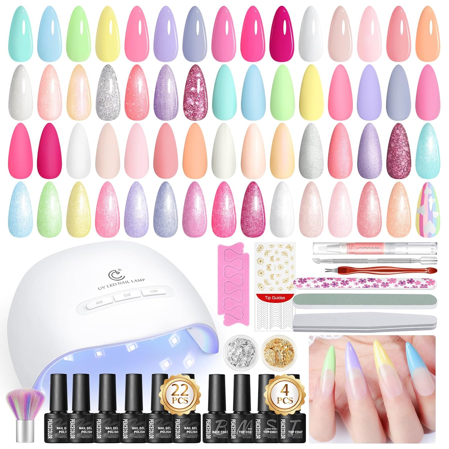 Peacecolor 39pc Gel Nail Polish Kit, Pink Milky White Orange All Seasons Pastel Gel Nail Kit with Nail Lamp Glossy Matte Top Base Coat Essential Manicure Tools Nails Art DIY