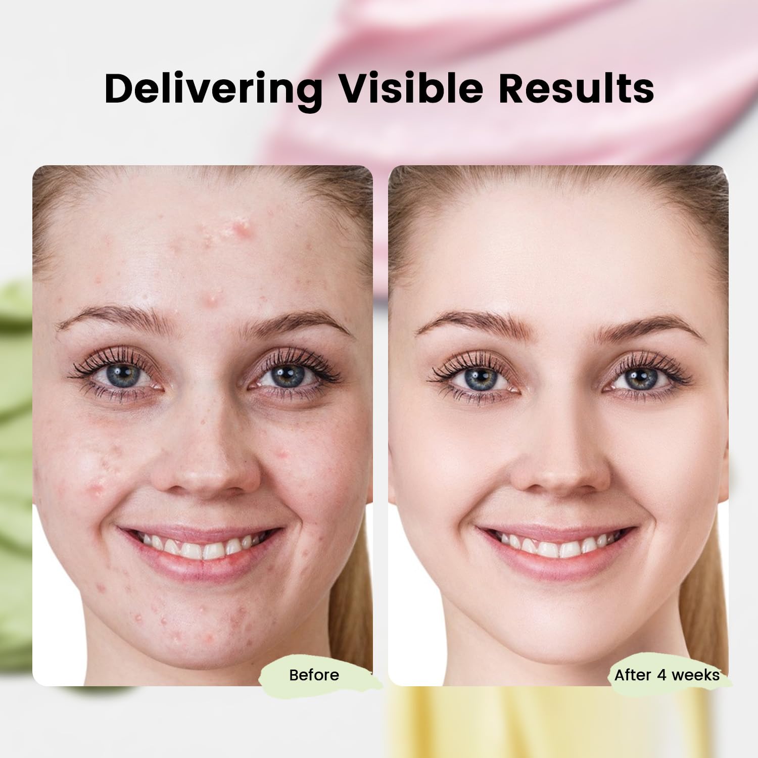 - Green Tea Clay Mask:Centered around green tea leaf extract and blended with centella asiatica, it balances sebum production, detoxifies pores, prevents acne breakouts, and restores a fresh, balanced complexion
