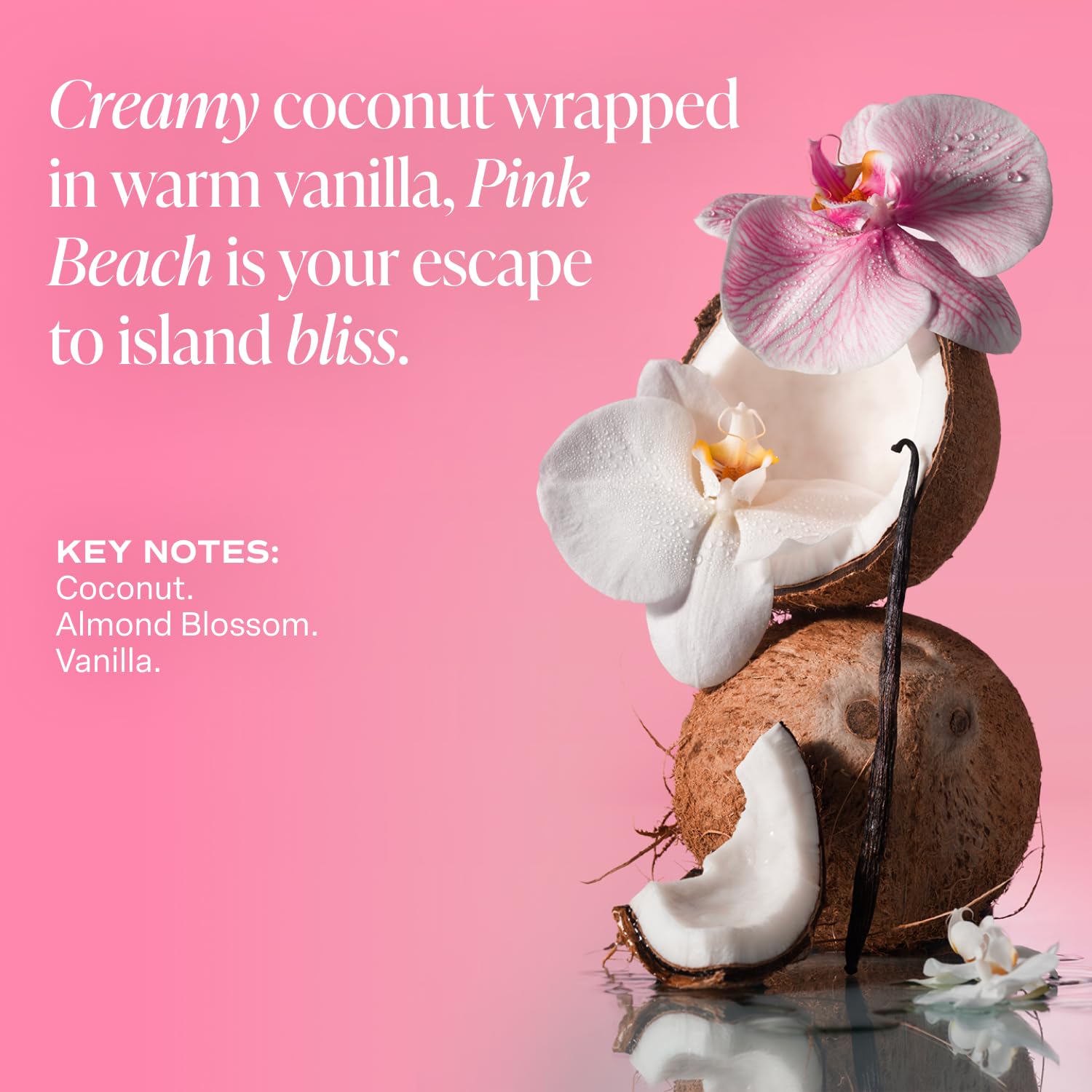 - PINK BEACH FRAGRANCE: Coconut, Almond Blossom, and Vanilla create a creamy, soft blend with a hint of floral, evoking a sense of island warmth, comfort, and effortless elegance. Pink Beach offers an escape to island bliss whenever you desire.