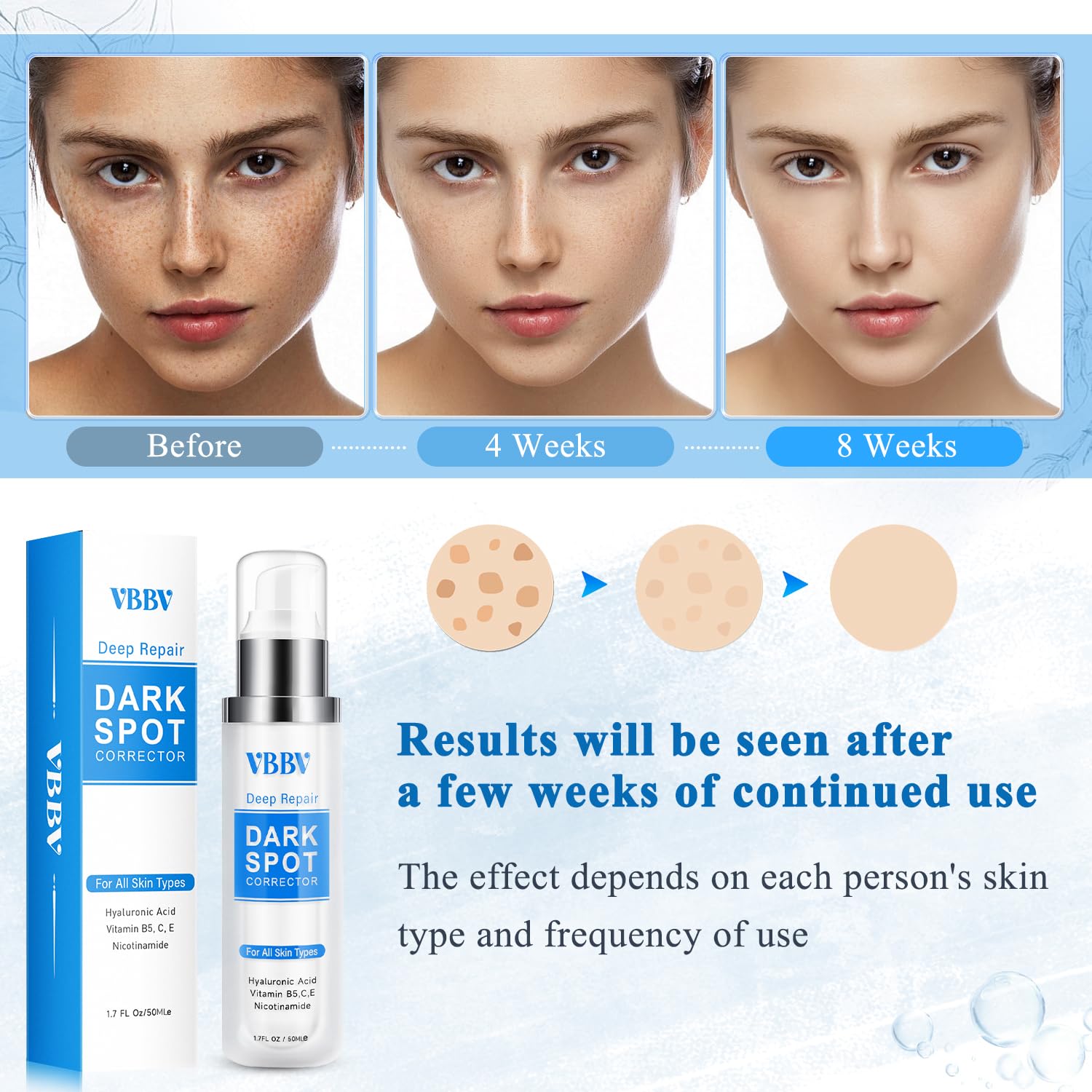- Fast Results: Incorporate this dark spot remover for face into your daily skincare routine, use it every morning and evening after cleansing, and insist on daily sun protection. You will see visible results in 4-8 weeks, with reduced dark spots and more radiant skin