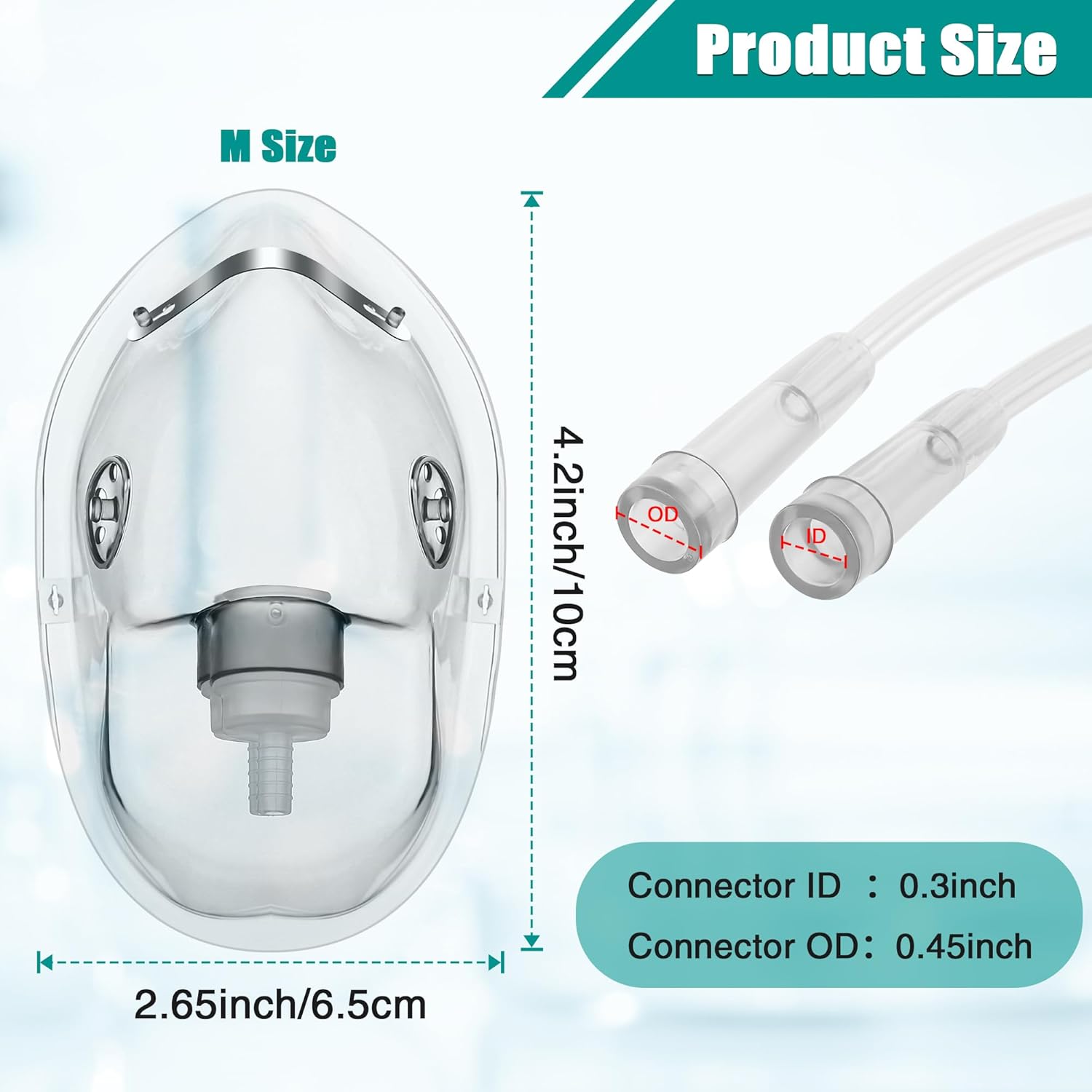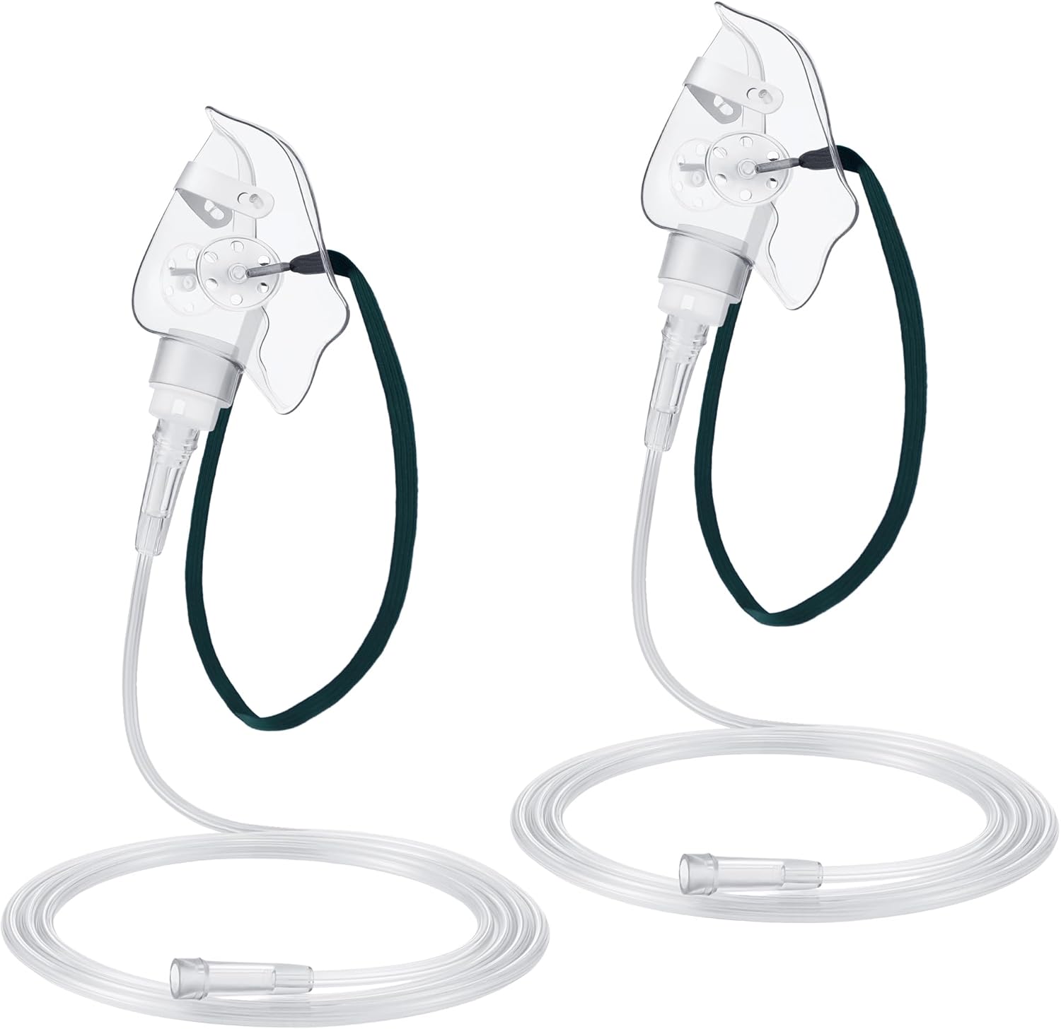 - Thoughtful Design: The oxygen mask for adult comes with an adjustable elastic headband that suits different head sizes, ensuring a safe, comfortable fit without slipping. It is further enhanced by a malleable nose clip that allows for precise adjustment of the nose profile, proper sealing to ensure optimal oxygen delivery, and a 7 foot anti kinking tube that allows for barrier free movement and consistent oxygen flow; This feature also helps prevent oxygen leaks, maximizing efficiency