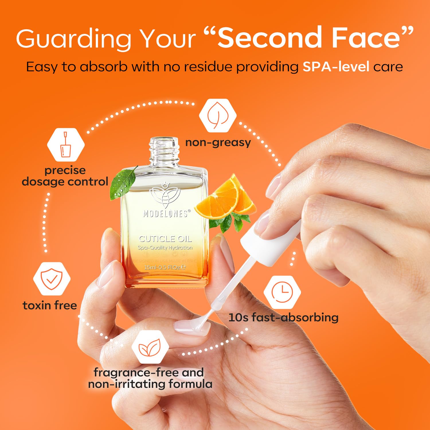 modelones Cuticle Oil for Nails Orange Nail Oil for Growth and Strength Nail Growth Oil Cuticle Care Quick Dry Nail Care Moisturize and Strengthen Damaged Nails 15ml 0.5Fl Oz