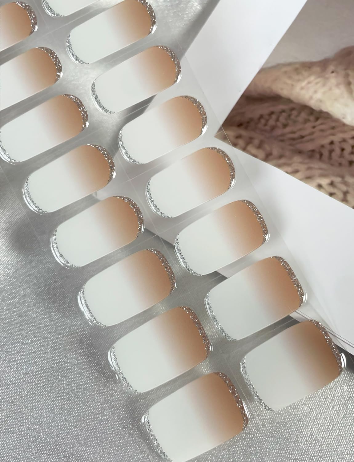 Semi Cured Gel Nail Strips, 20pcs Brown Ombre, Glitter Gel Nail Stickers UV for Home Nails DIY