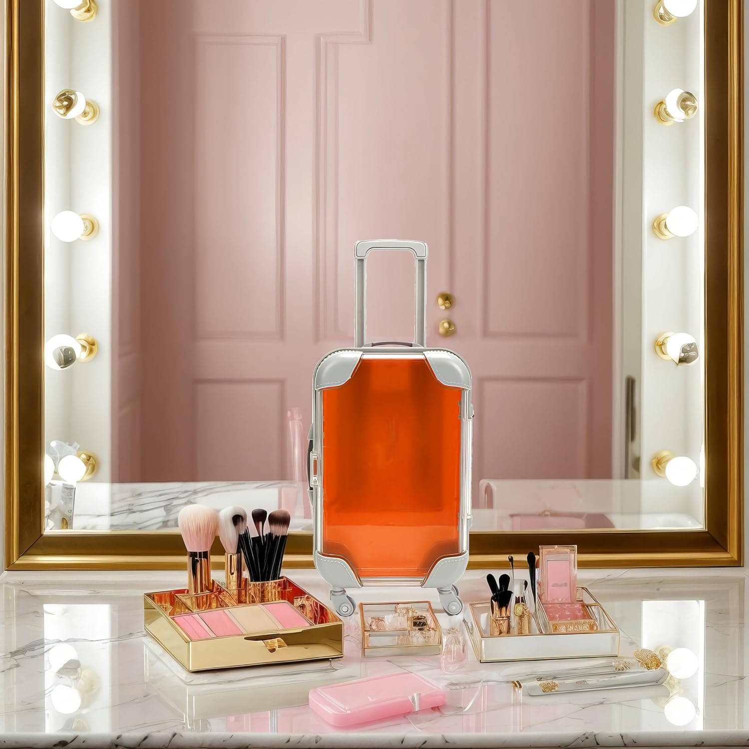 This rechargeable LED travel makeup mirror offers 3 lighting modes, dimmable brightness, multi-angle adjustment, and a storage tray—perfect for flawless makeup anywhere.