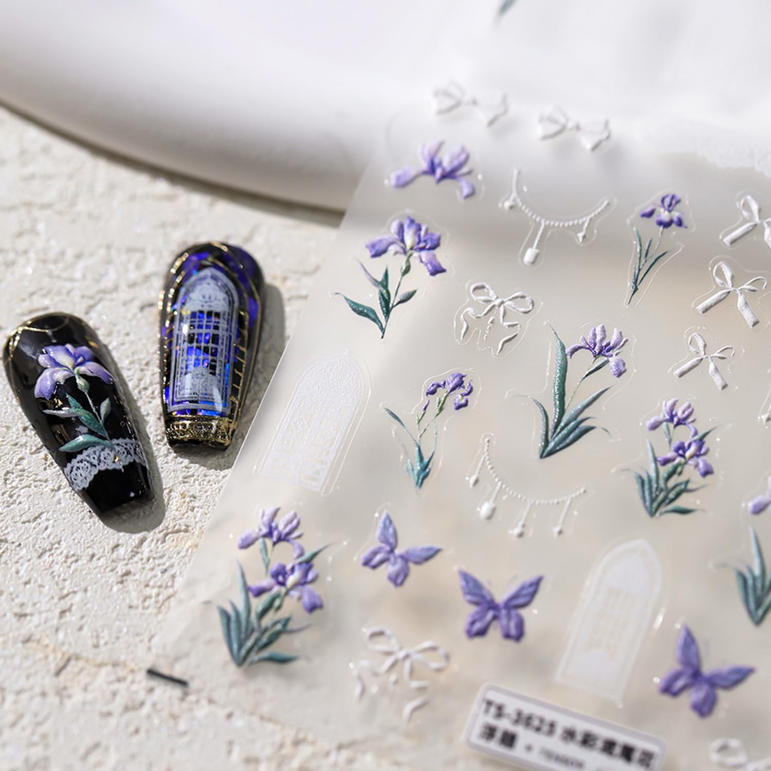 - Attractive Floral Nail Decals: 1 sheets of 5D embossing flower nail stickers, give you an advanced exquisite feeling. Iris floral bow plants elements nail decals, cute and beautiful carving patterns designs, suitable for your spring summer nail decorations