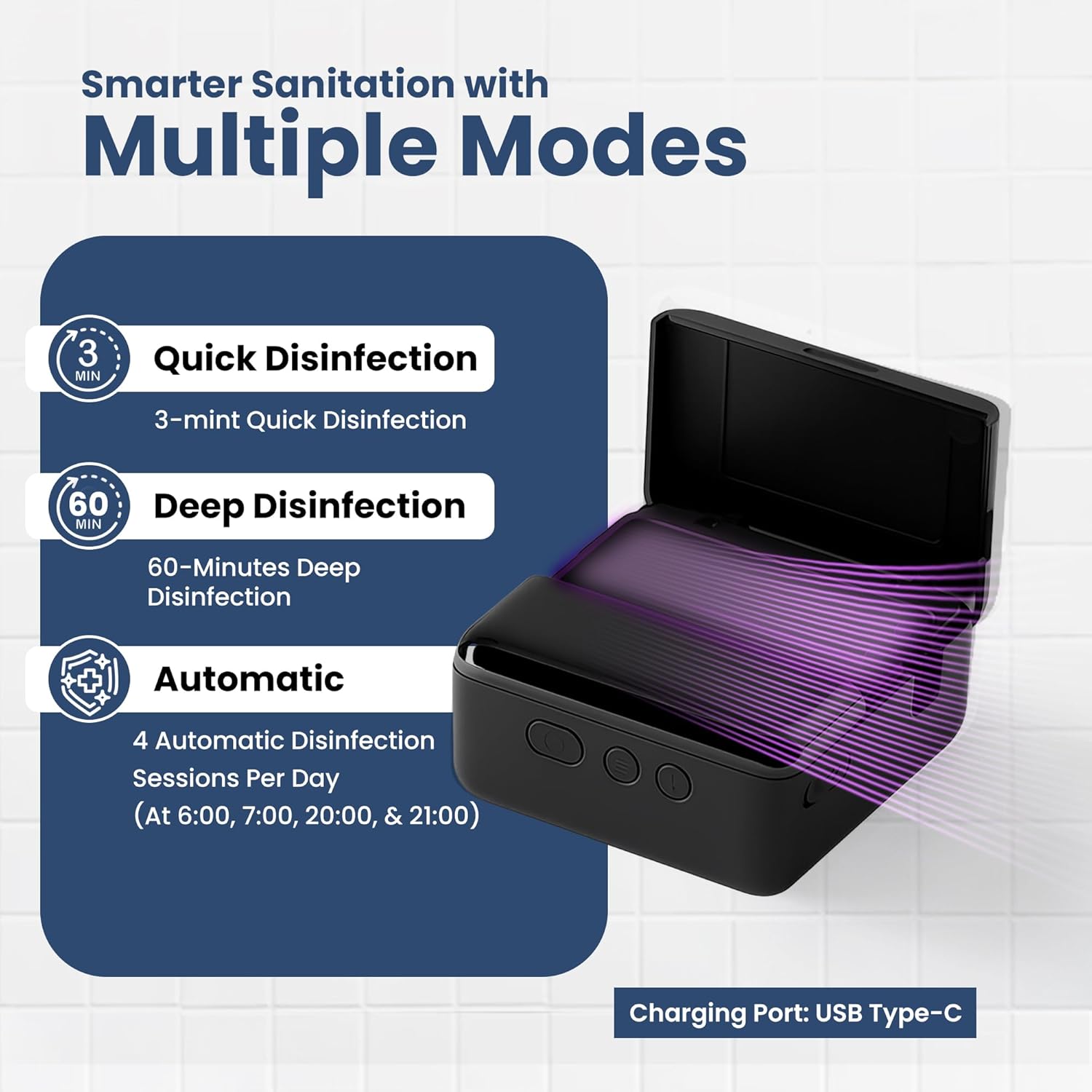 - Precision UV-C Care with Advanced Heating + Fan drying : Eliminate 99.9% impurities with powerful dual-band UV-C light and warm airflow. This UV tooth brush sanitizer holder keeps your brush cleaner and drier making it safe for daily use by the whole family.
