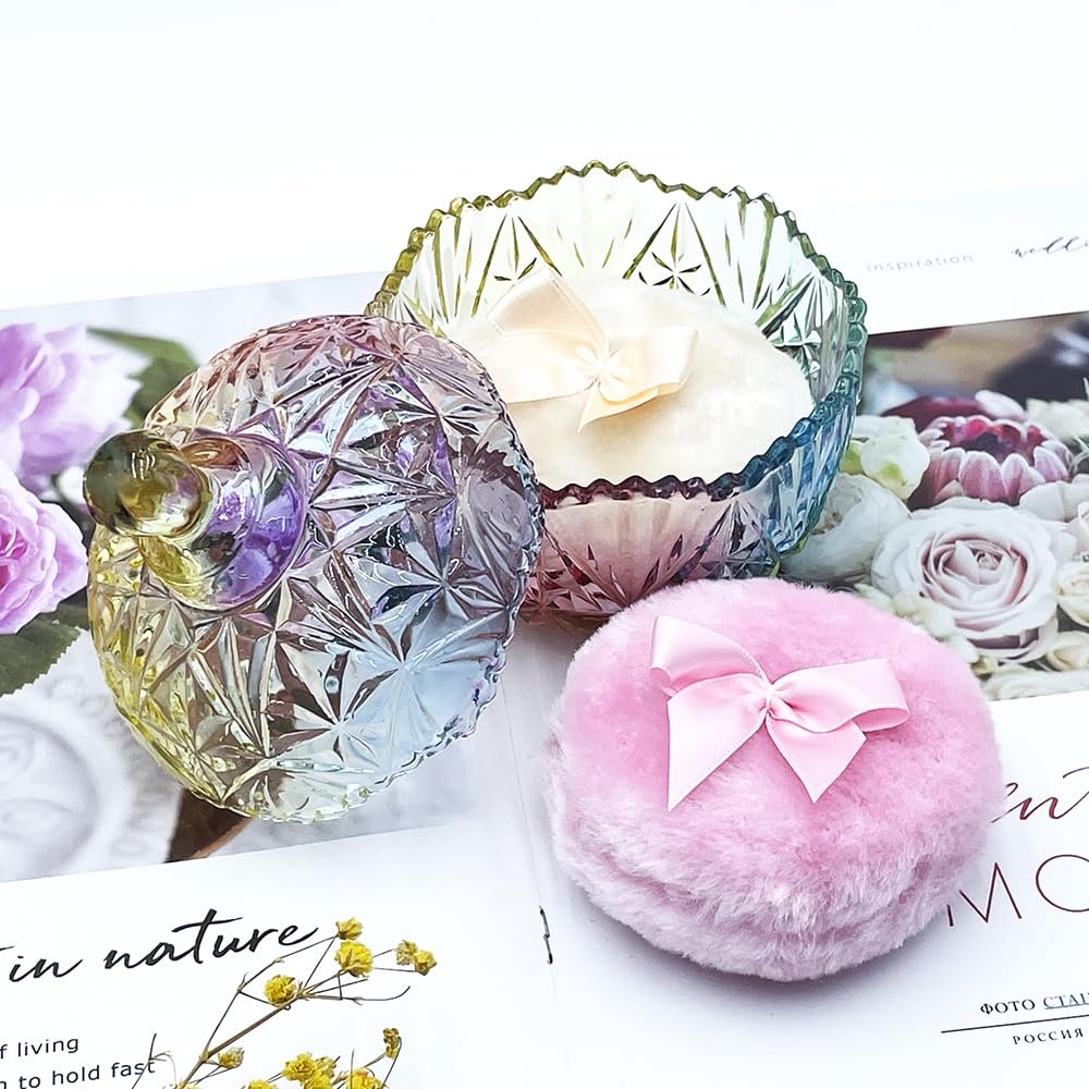 - Premium 2 Powder Puffs & 1 Stylish Jar Combo: Includes 2 ultra-soft 3.5" long-fluff powder puffs (ideal for body powder or makeup setting) and a chic 4" glass powder jar with vavious color options.