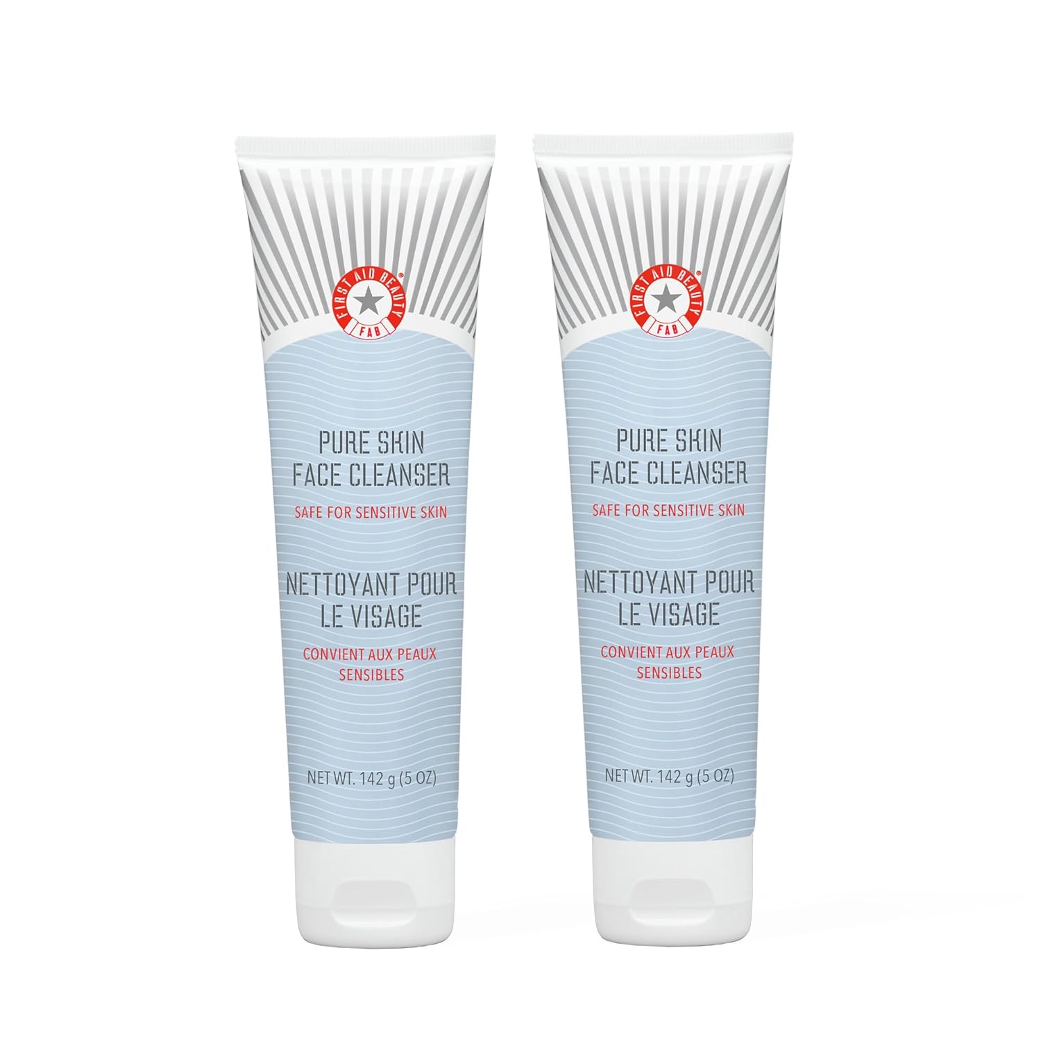 First Aid Beauty - Pure Skin Face Cleanser, Effectively Removes Makeup, Dirt, & Impurities, Gentle Cleanser Leaves skin Soft & Supple, Fragrance Free (5 oz, 2 ct)