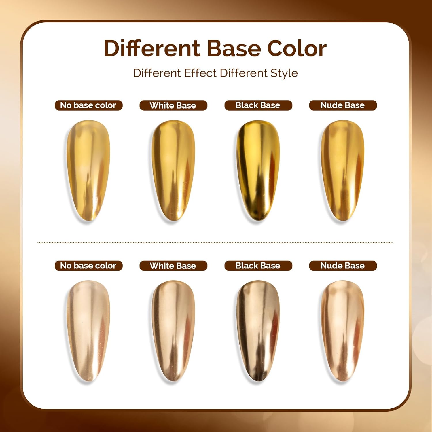 - Wide Range of Applications: Suitable for UV gel nails,acrylic nails,natural nails or false nails.Easy to get a salon grade chrome effect without special techniques.Powder is easy to apply and suitable for beginners