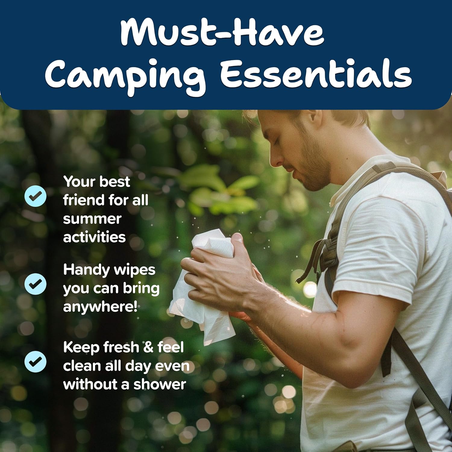 - Body Wipes Made with 100% Bamboo Fibers - Plant-Based Yet Ultra Gentle. These compact travel-size camping shower wipes are non-abrasive and ready for quick refreshes while hiking, camping, or attending festivals. Perfect for outdoor adventures and minimal packing, these no rinse wipes for body are a trusted camping hygiene essential. Add to Cart and Order Now for clean comfort wherever you are.